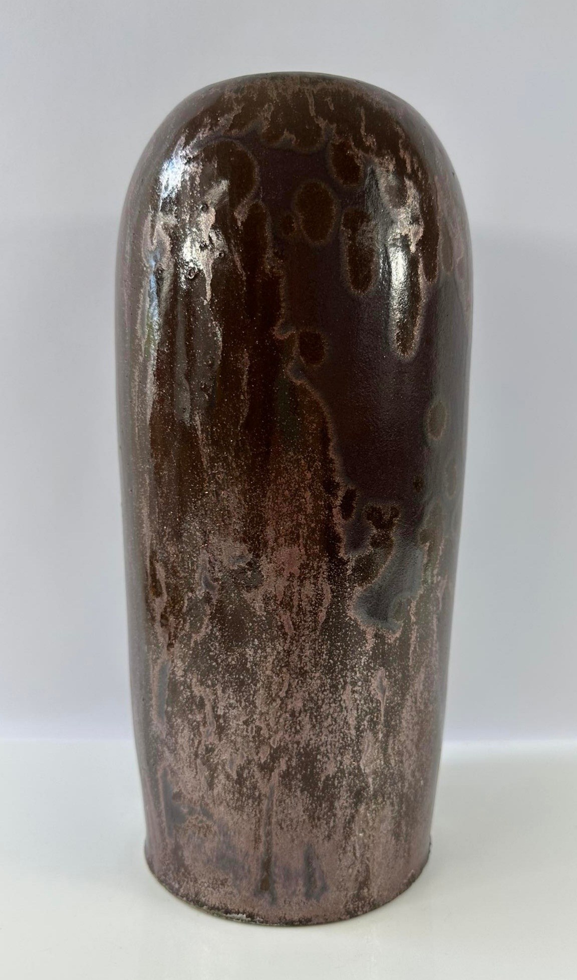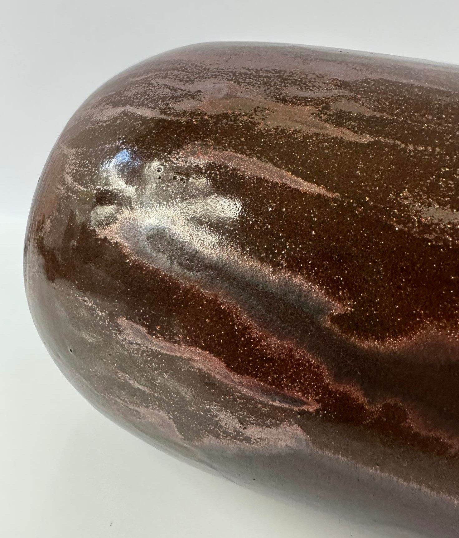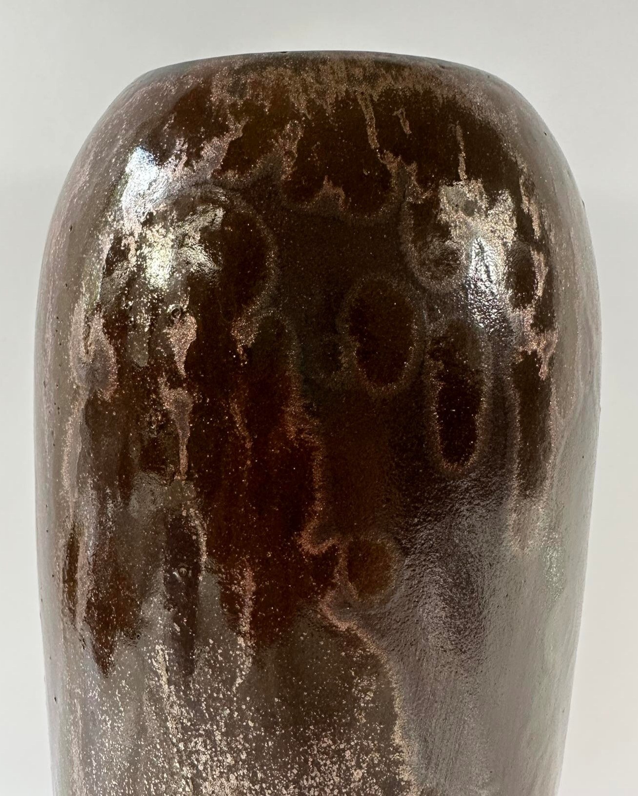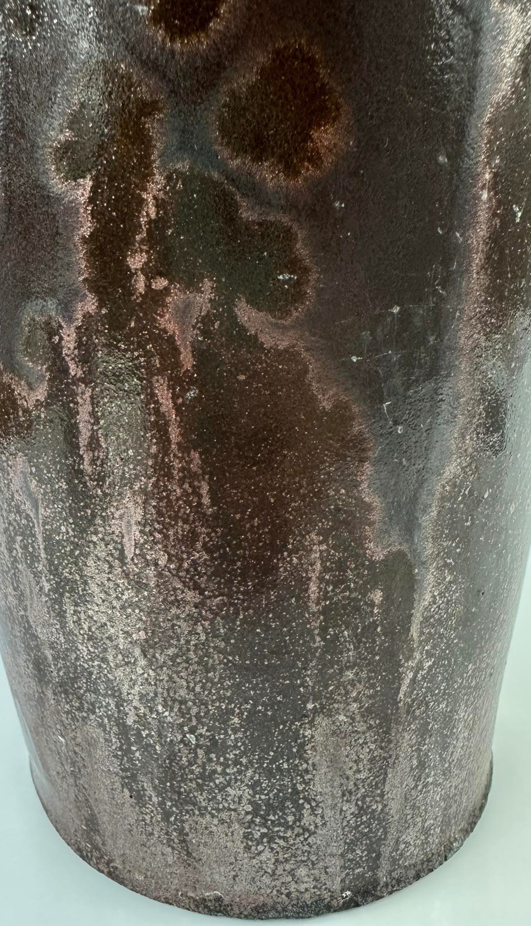 wysokość ok 30 cm, niewielkie ukruszenia szkliwa przy podstawie, szkliwo częściowo matowe, częściowo brokatowe w odcianiach brązu, włosowate pęknięcie szkliwa przy wlewie