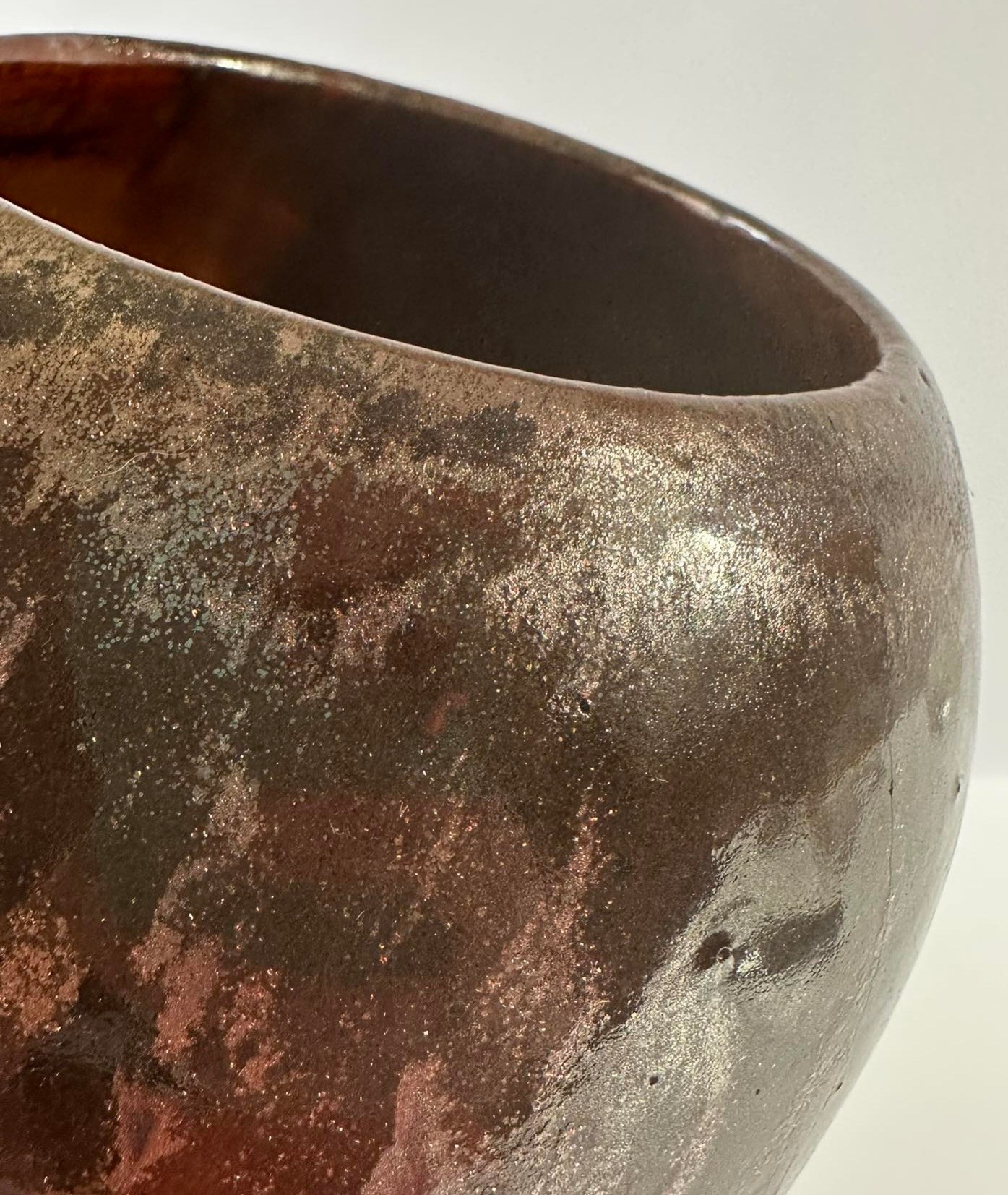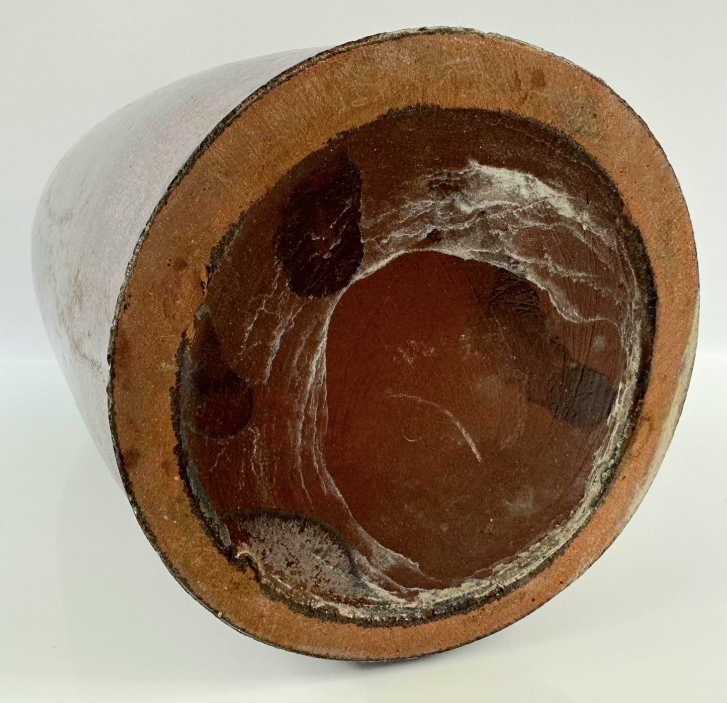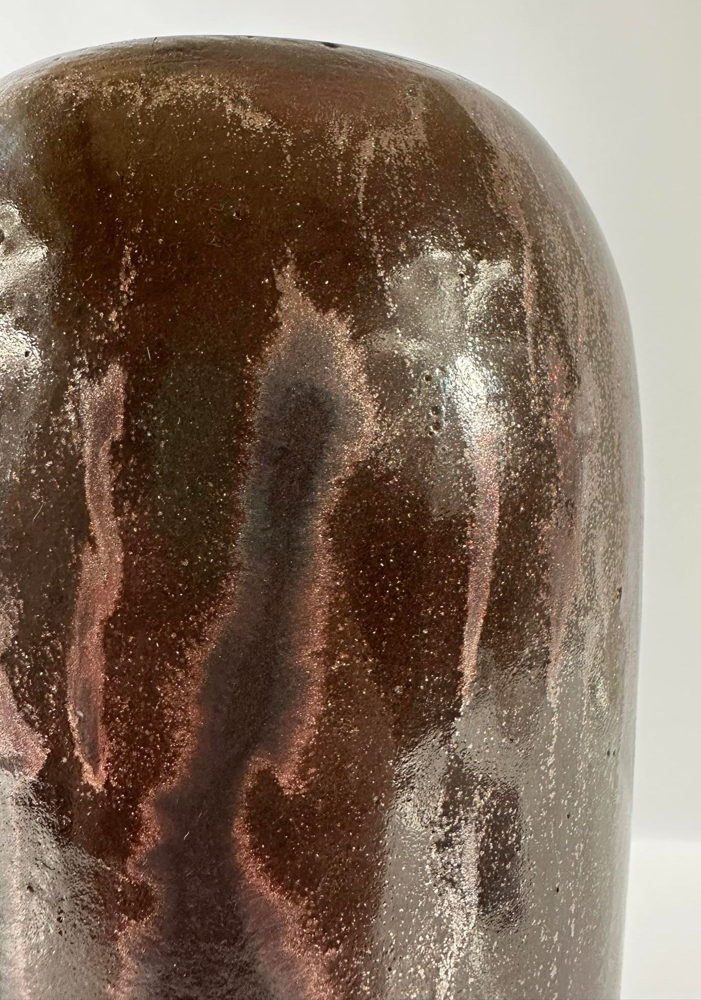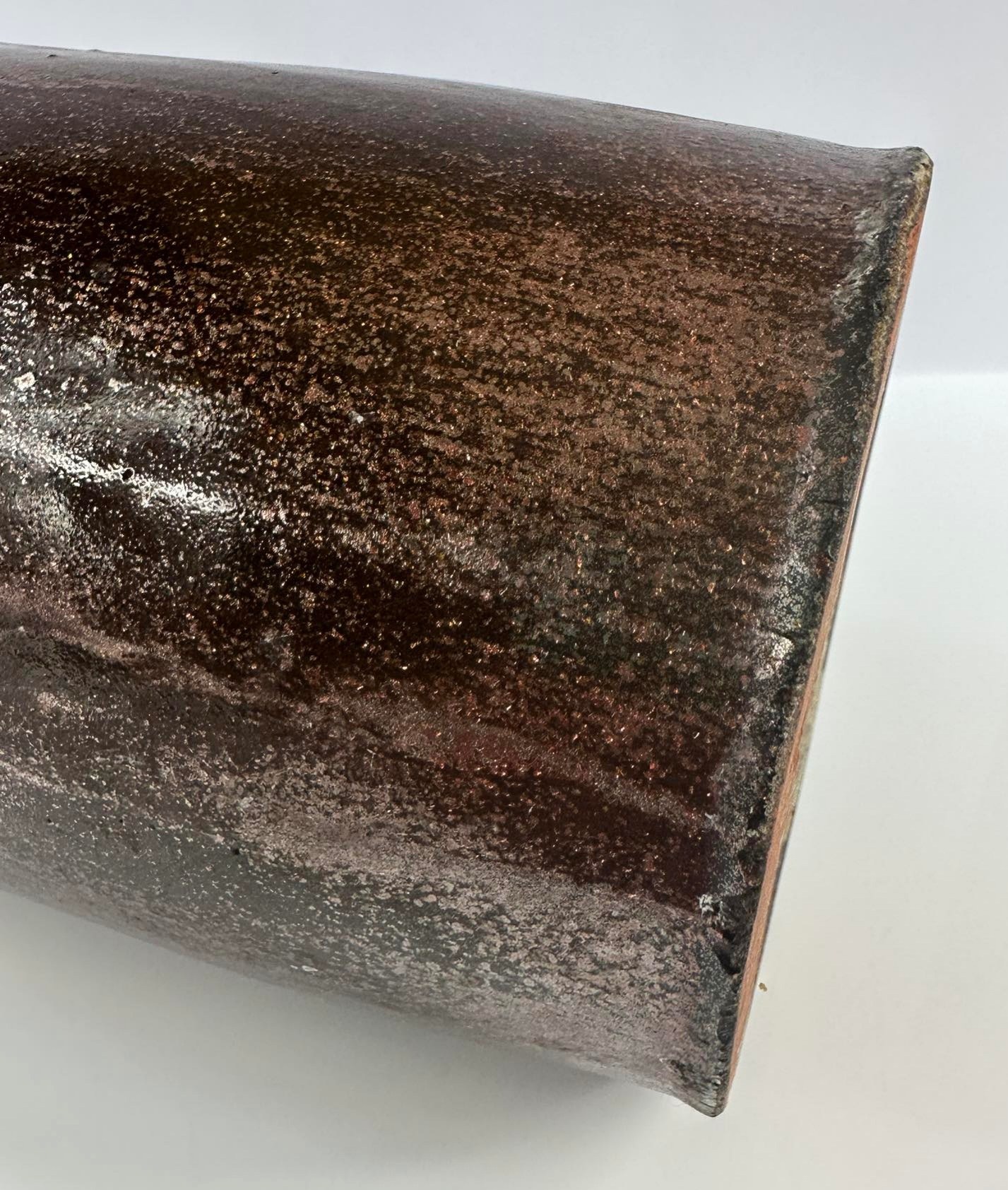 wysokość ok 30 cm, niewielkie ukruszenia szkliwa przy podstawie, szkliwo częściowo matowe, częściowo brokatowe w odcianiach brązu, włosowate pęknięcie szkliwa przy wlewie