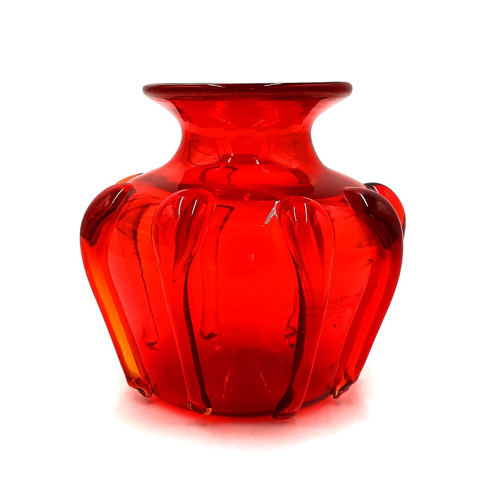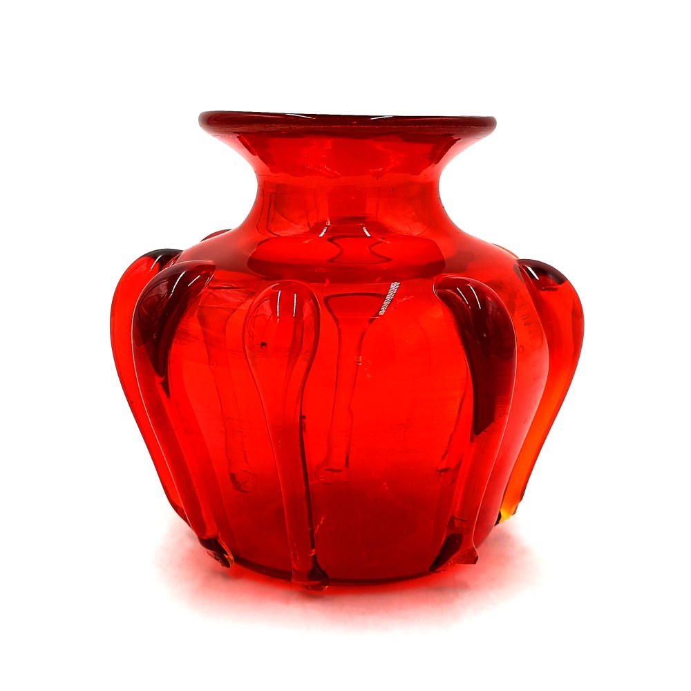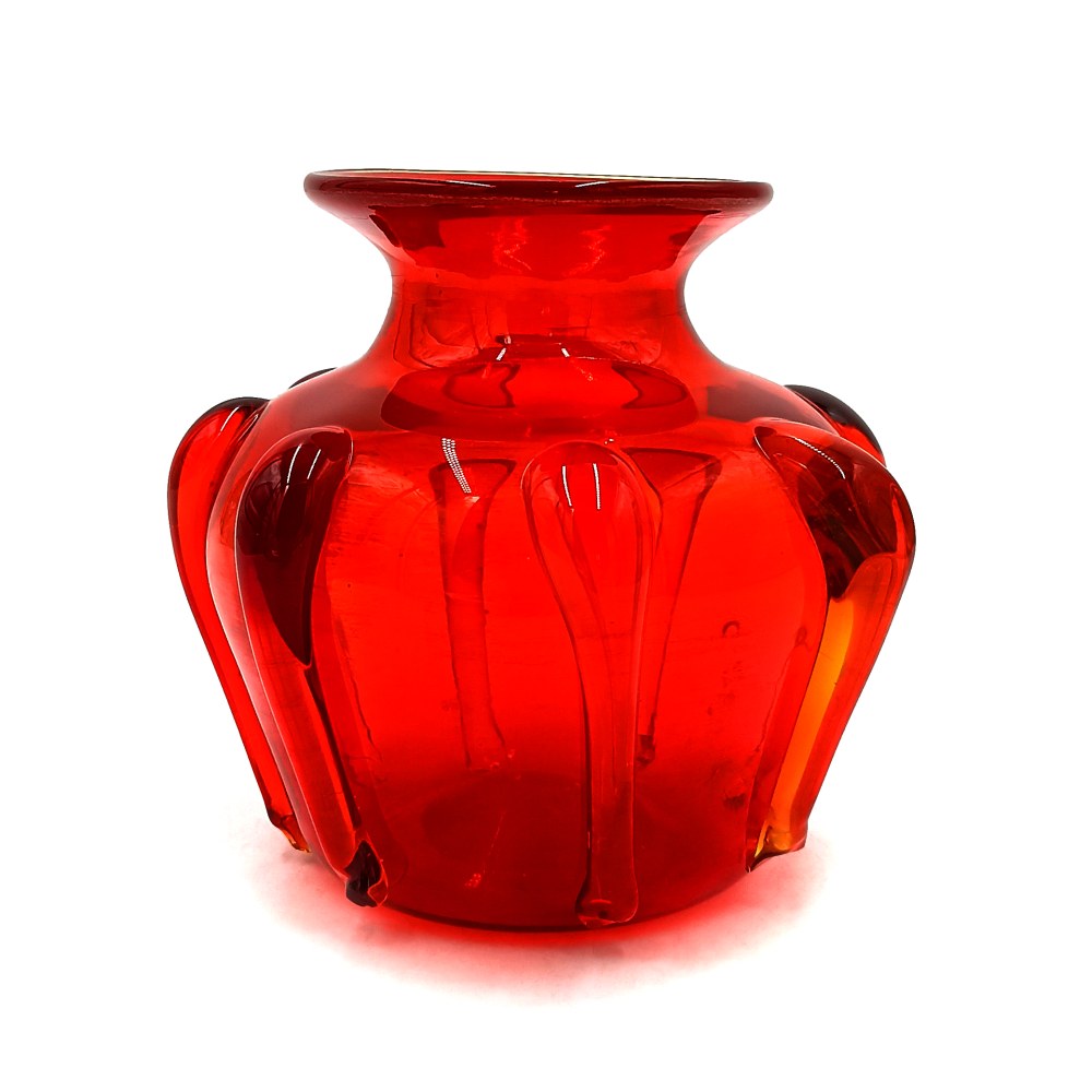 szkło sodowe, barwione w masie, pomarańczowo-czerwone, ręcznie formowane, wys. 14 cm