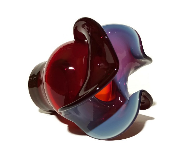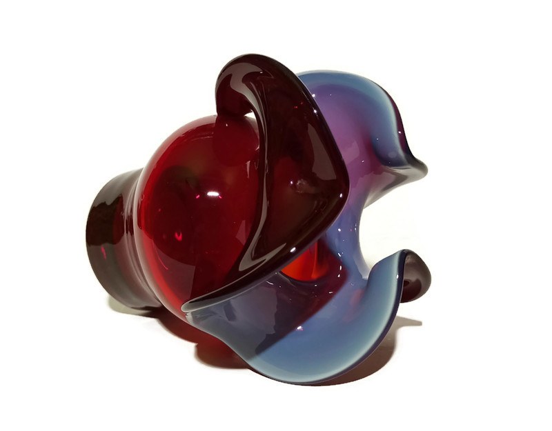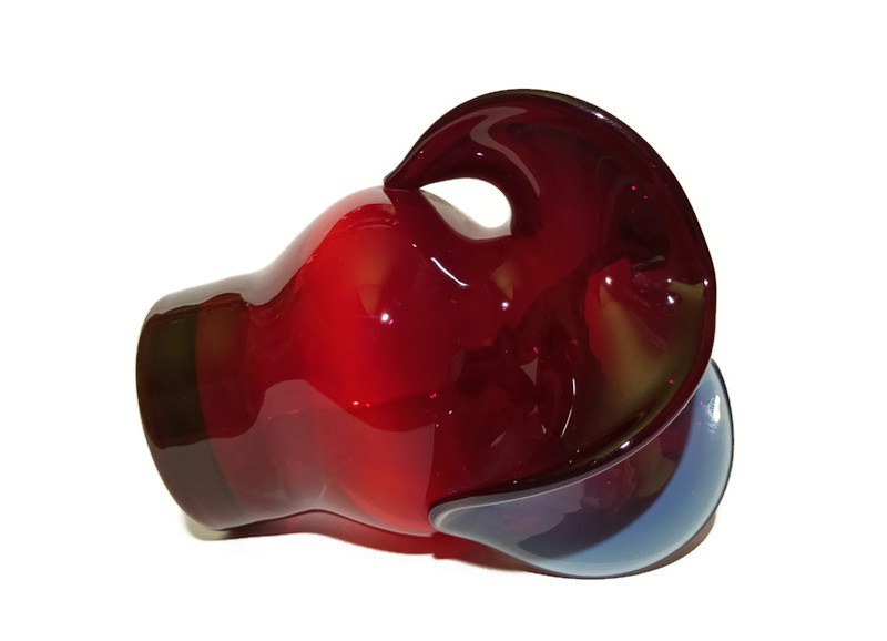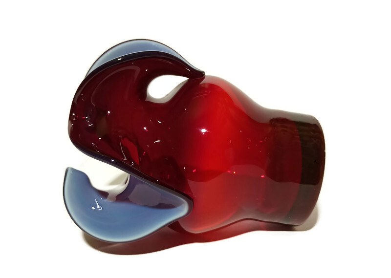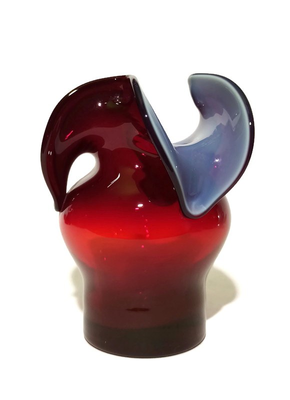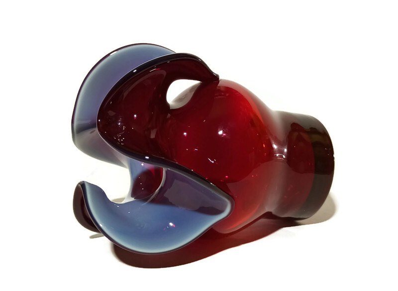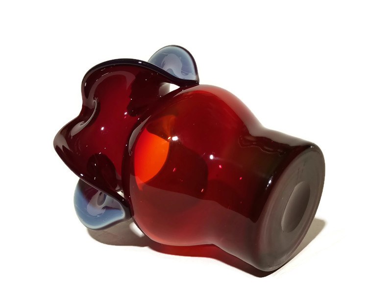 szkło barwione w masie, wysokość 15cm, kolor rubinowy, intensywna czerwień, wewnątrz mleczny, stan bardzo dobry,
