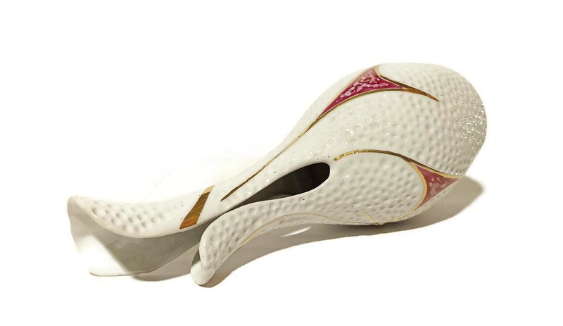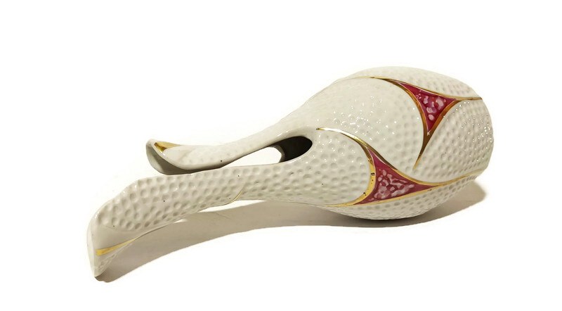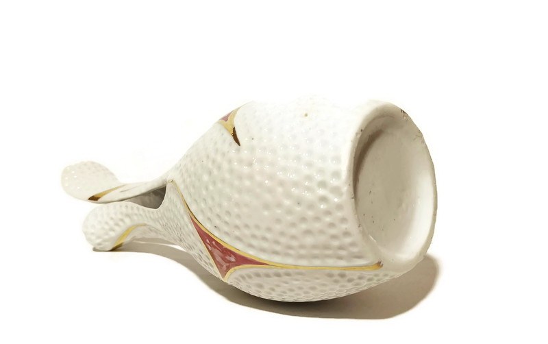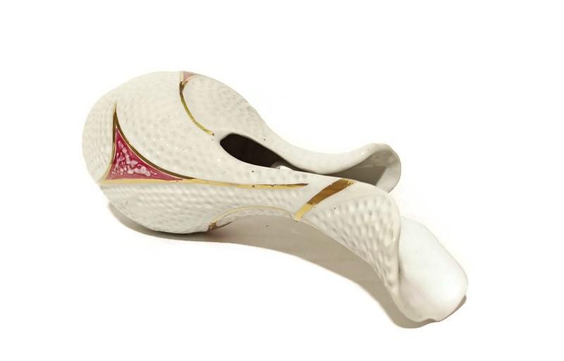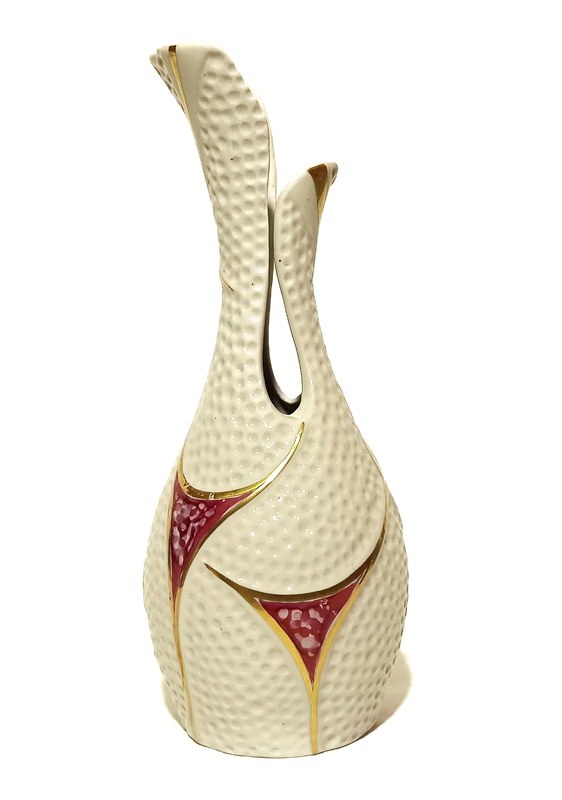 porcelana szkliwiona, malowana ręcznie, relief groszkowy wklęsły, złocenia, wysokość 25,5cm, bez sygnatury