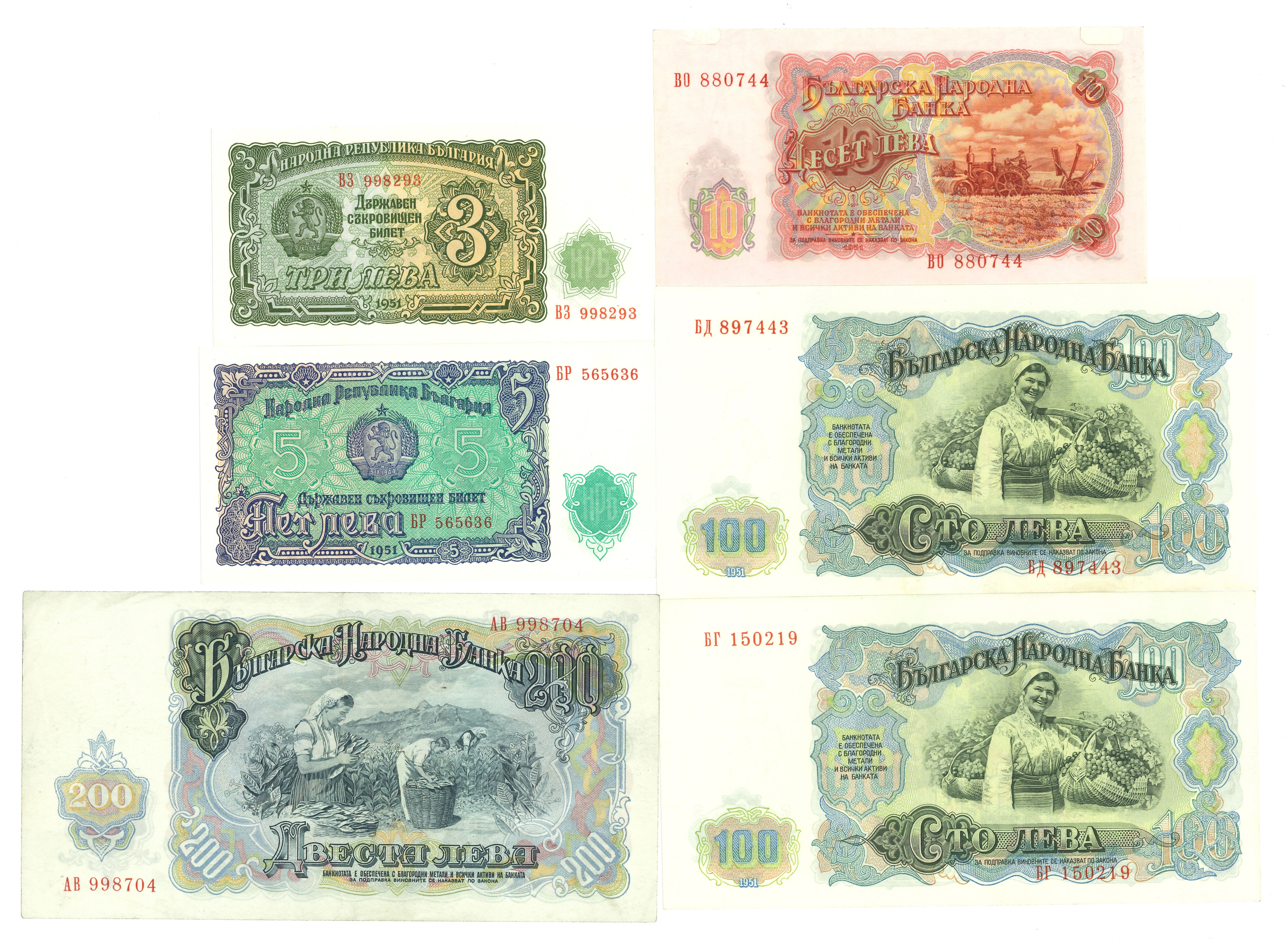 3-100 rubli banknoty w kondycji emisyjnej i okołoemisyjnej, bez większych wad, możliwe delikatne zagniecenia w obrębie krawędzi.