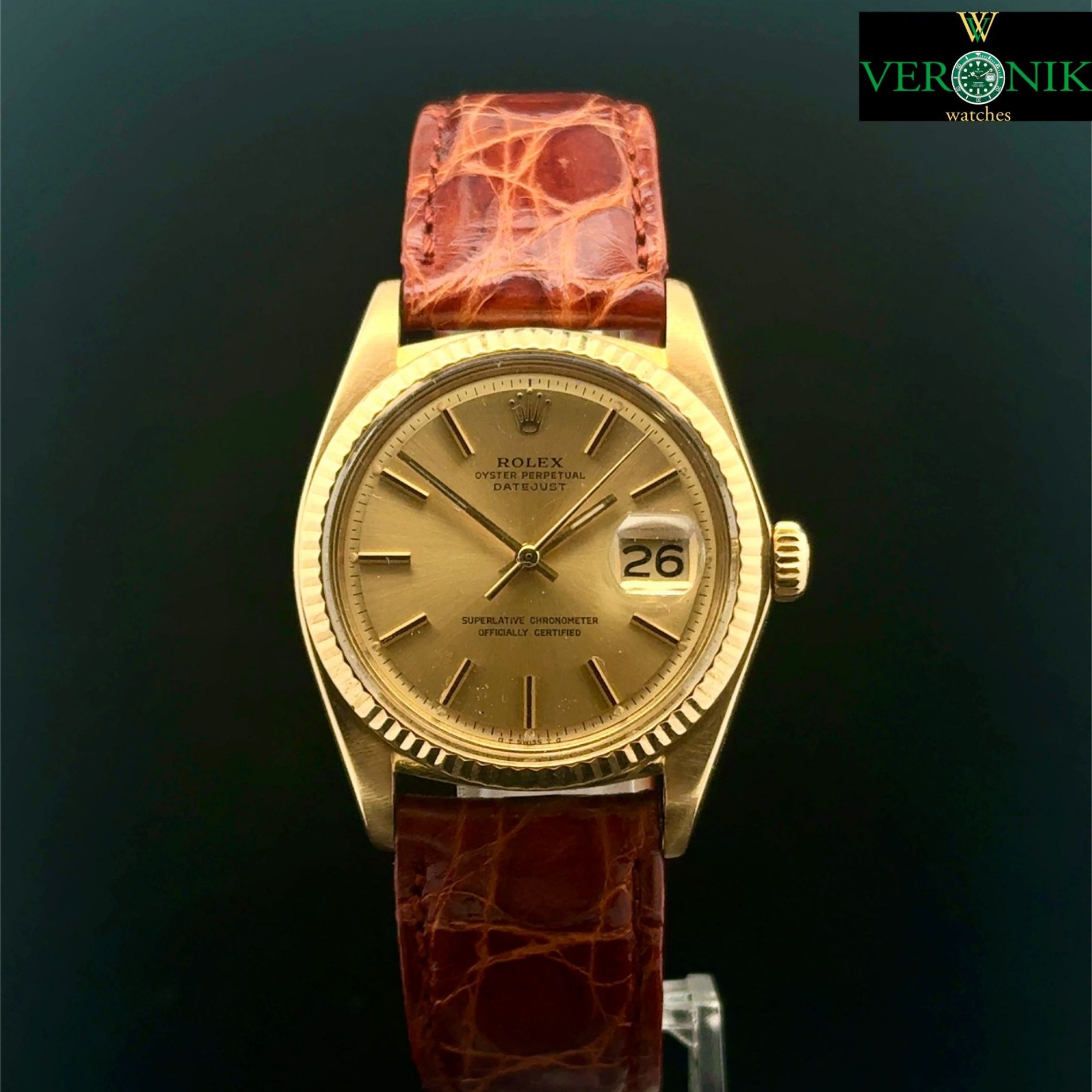 BRAND ROLEX REFERENCE NUMBER 1600 MOVEMENT AUTOMATIC CASE MATERIAL GOLD STRAP MATERIAL AFTERMARKET LEATHER, ROLEX GOLD BUCKLE CONDITION EXCELLENT WITHOUT ORIGINAL BOX OR ORIGINAL PAPERS 1 YEAR SHOP WARRANTY DIAMETER 36MM WATER RESISTANT 10 ATM STRAP STRAP MATERIAL LEATHER FEATURES ONE YEAR SHOP WARRANTY FROM THE DATE OF AUCTION YEAR 1977 - AUCTION COMMISSION 25%
