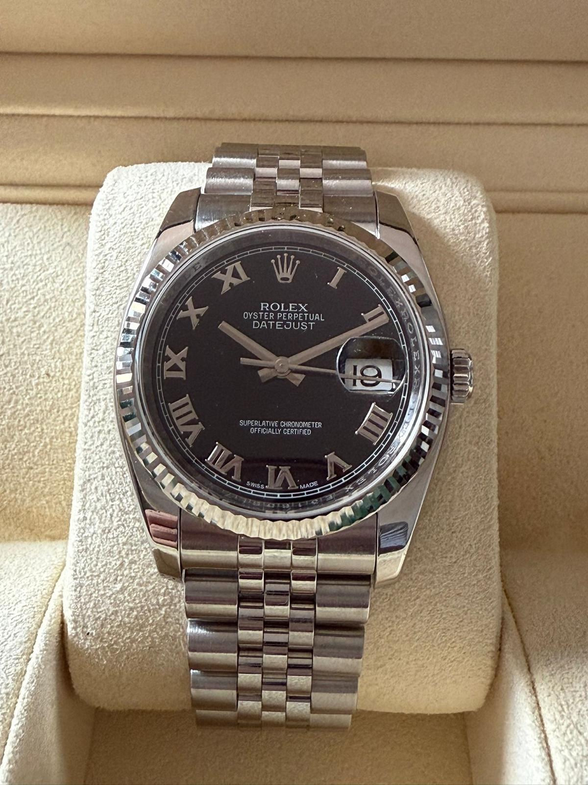 BRAND ROLEX MODEL (WATCH) DATEJUST 36 REFERENCE NUMBER 116234 MOVEMENT AUTOMATIC CASE MATERIAL STEEL STRAP MATERIAL STEEL YEAR OF PRODUCTION 2010 CONDITION USED (VERY GOOD) THE ITEM HAS SLIGHT SIGNS OF WEAR, SUCH AS LIGHT SCRATCHES, BUT NOT PERCEPTIBLE TO THE TOUCH ACCESSORIES WITH ORIGINAL PAPERS, WITHOUT ORIGINAL BOX MOVEMENT AUTOMATIC CASE CASE MATERIAL STEEL DIAMETER 36 MM WATER RESISTANT 10 ATM BEZEL MATERIAL WHITE GOLD GLASS SAPPHIRE CRYSTAL STRAP STRAP MATERIAL STEEL STRAP COLOR STEEL CLASP MATERIAL STEEL FUNCTIONS DATE - AUCTION COMMISSION 25%