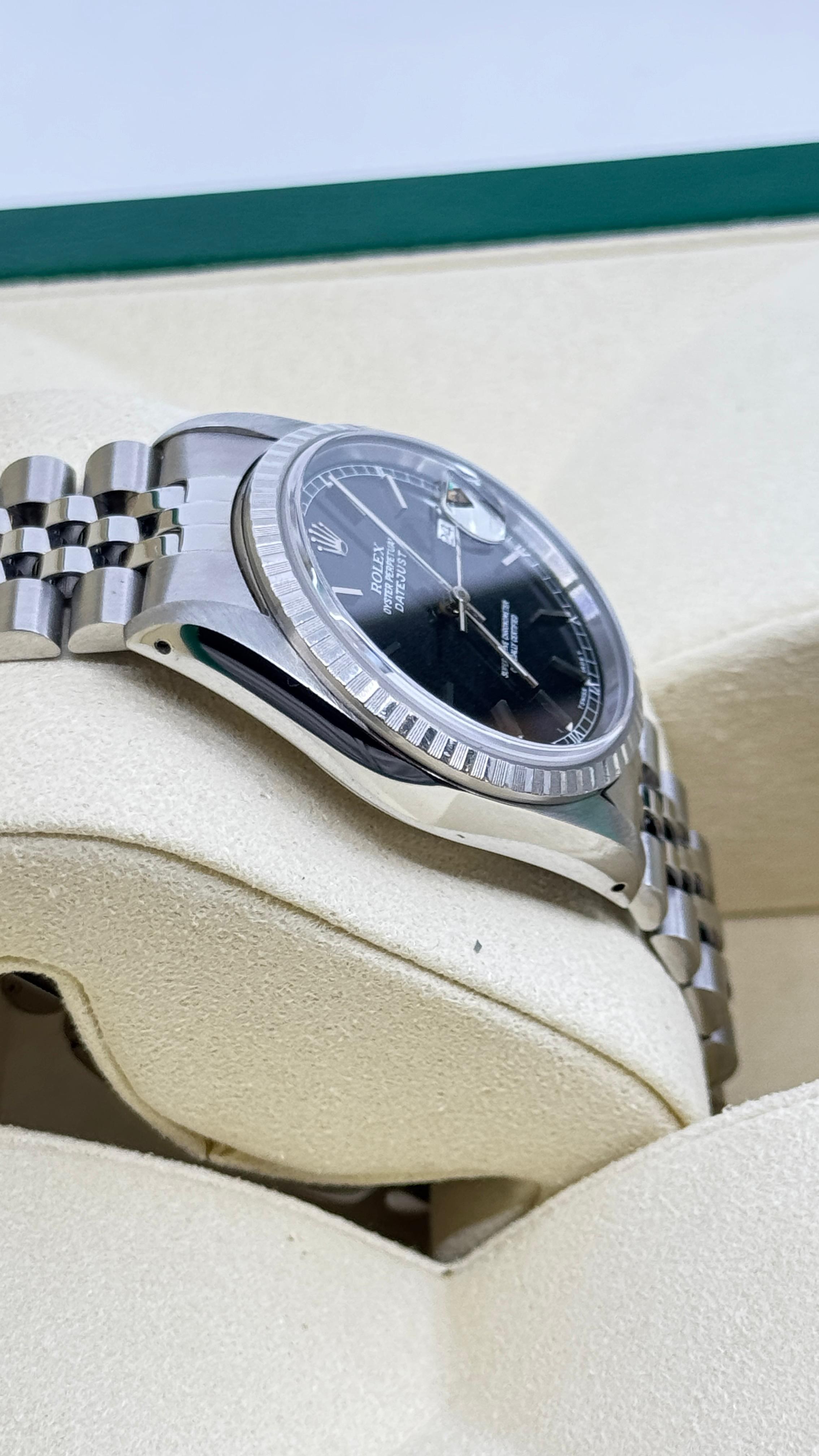 BRAND ROLEX MODEL (WATCH) DATEJUST 36 REFERENCE NUMBER 16220 YEAR 1992 MOVEMENT AUTOMATIC CASE MATERIAL STEEL STRAP MATERIAL STEEL CONDITION EXCELLENT (PRE-OWNED, NO OR BARELY VISIBLE SIGNS OF WEAR) ACCESSORIES WITHOUT ORIGINAL PAPERS, WITHOUT ORIGINAL BOX ONE YEAR SHOP WARRANTY CALIBER MOVEMENT AUTOMATIC CASE MATERIAL STEEL DIAMETER 36 MM WATER RESISTANT 10 ATM BEZEL MATERIAL STEEL GLASS SAPPHIRE CRYSTAL STRAP STRAP MATERIAL STEEL STRAP COLOR STEEL CLASP DÉPLOYANTE CLASP MATERIAL STEEL FUNCTIONS DATE - AUCTION COMMISSION 25%
