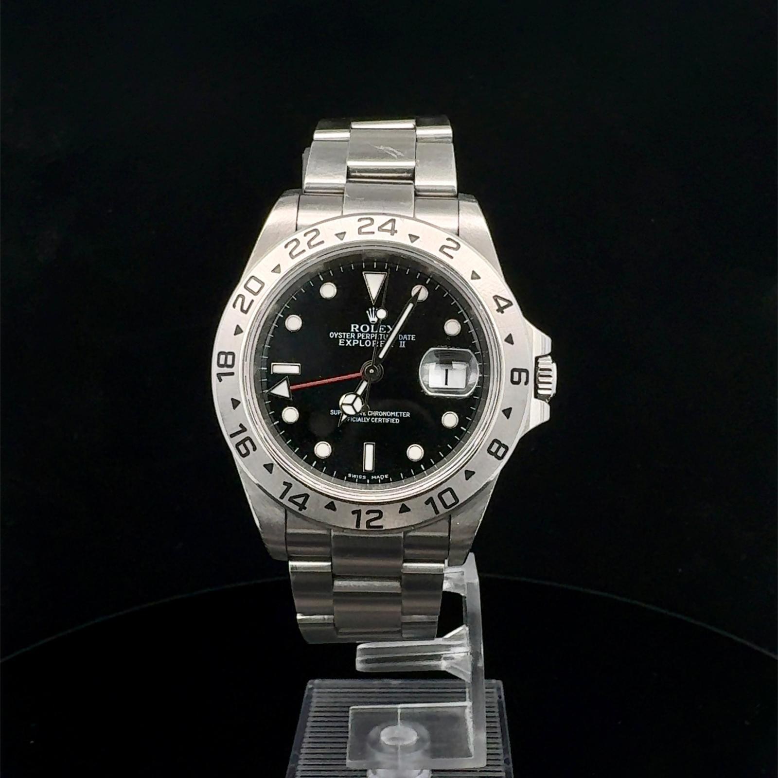 BRAND ROLEX MODEL (WATCH) EXPLORER II REFERENCE NUMBER 16570 WINDING AUTOMATIC CASE MATERIAL STEEL STRAP MATERIAL STEEL 2000S CONDITION USED (EXCELLENT) THE ITEM SHOWS SLIGHT SIGNS OF WEAR, SUCH AS LIGHT SCRATCHES, BUT NOT PERCEPTIBLE TO THE TOUCH. ORIGINAL DOCUMENTS, NO BOX CASE CASE MATERIAL STEEL DIAMETER 40 MM WATERPROOF 10 ATM BEZEL MATERIAL STEEL GLASS SAPPHIRE GLASS DIAL BLACK NUMBERS ON THE DIAL WITHOUT NUMBERS STRAP STRAP MATERIAL STEEL STRAP COLOR STEEL FOLDING CLASP CLASP MATERIAL STEEL