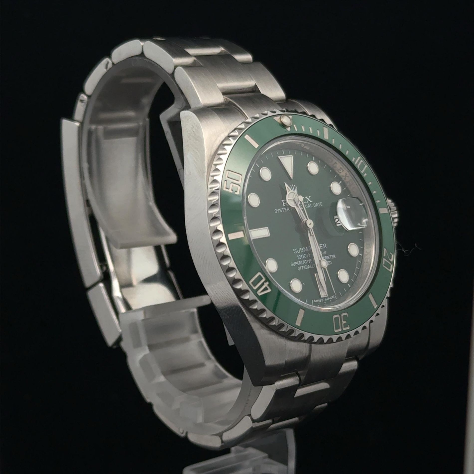 BRAND ROLEX MODEL (WATCH) SUBMARINER DATE REFERENCE NUMBER 116610LV MOVEMENT AUTOMATIC CASE MATERIAL STEEL STRAP MATERIAL STEEL YEAR OF PRODUCTION 2011 CONDITION EXCELLENT (PRE-OWNED, NO OR BARELY VISIBLE SIGNS OF WEAR) SET OF ORIGINAL ROLEX DOCUMENTS, NO BOX, THE BOX USED ONLY FOR PHOTOGRAPHS IS NOT FOR SALE MOVEMENT AUTOMATIC CASE CASE MATERIAL STEEL DIAMETER 40 MM WATER RESISTANT 30 ATM BEZEL MATERIAL CERAMIC GLASS SAPPHIRE CRYSTAL DIAL BLACK NUMBERS ON THE DIAL WITHOUT NUMBERS STRAP STRAP MATERIAL STEEL STRAP COLOR STEEL CLASP DÉPLOYANTE CLASP MATERIAL STEEL FUNCTIONS DATE OTHER CENTRAL SECONDS, SCREW-DOWN CROWN - AUCTION COMMISSION 25%