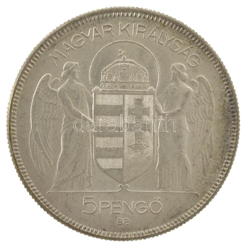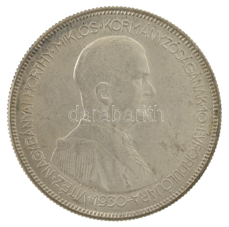 1930. 5P Ag "Horthy jobbra" hajas T:AU patina / Hungary 1930. 5P Ag "10th Anniversary - Regency of Admiral Horthy" C...