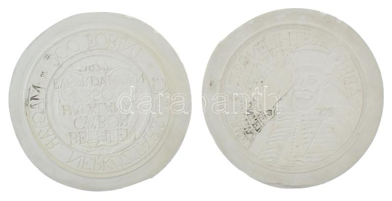 1979. 200Ft "Bethlen Gábor halálának 350. évfordulóján" meg nem valósult érmetervezet gipsz előlapi és hátlapi NEGATÍV nagyminta (160mm) T:AU,XF ph. / Hungary 1979. 200 Forint "Bethlen Gábor halálának 350. évfordulóján (On the 350th anniversary of the death of Gábor Bethlen)" unrealized coin's plan obverse and reverse NEGATIVE large plaster sample (160mm) C:AU,XF edge error Adamovszky katalógusban nem szerepel / Not listed in Adamovszky's catalogue