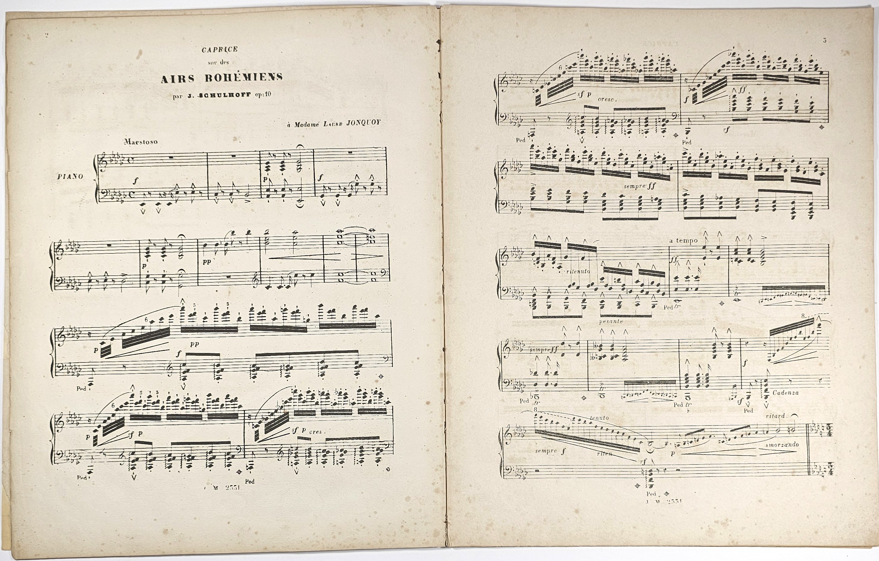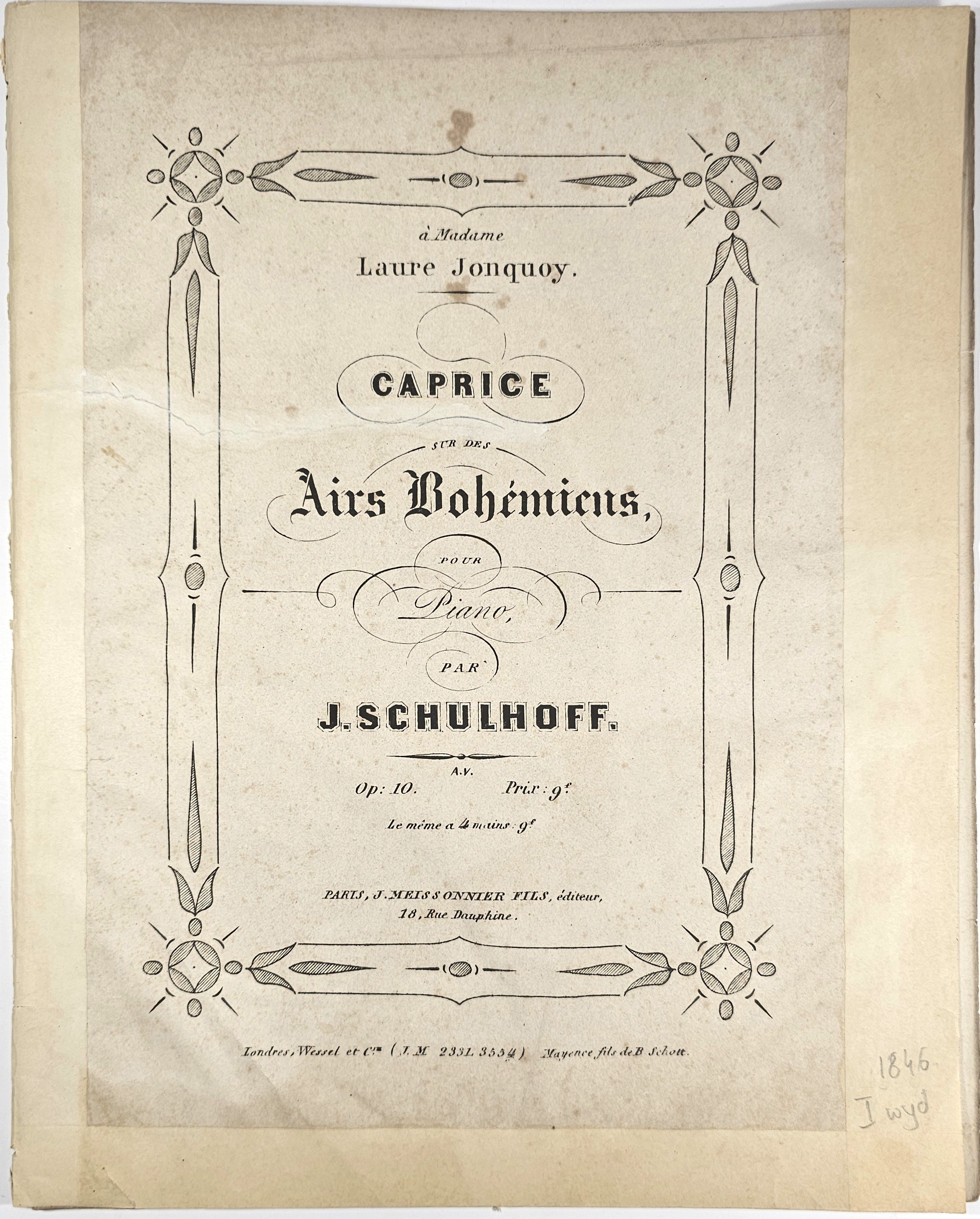 4, s. karta tytułowa, 17. Londres, Wessel & Co., nr wydawniczy J. M. 2331. Pierwsza karta z podklejeniami przy krawędziach, ostatnia karta z ubytkami, z nieznaczną stratą tekstu, rdzawe plamki. Pierwsze wydanie.