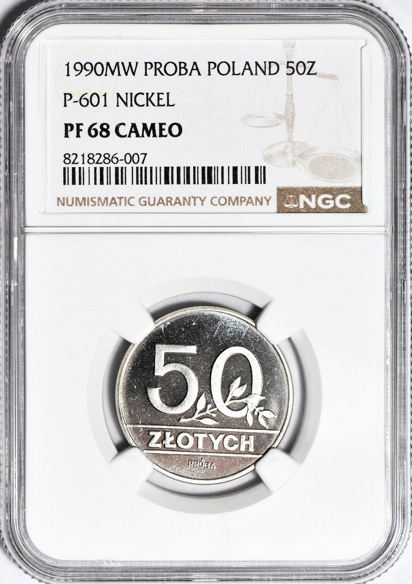 50 złotych 1990, PIERWSZA PRÓBNA MONETA III RP Z ORŁEM W KORONIE, PRÓBA, NIKIEL
