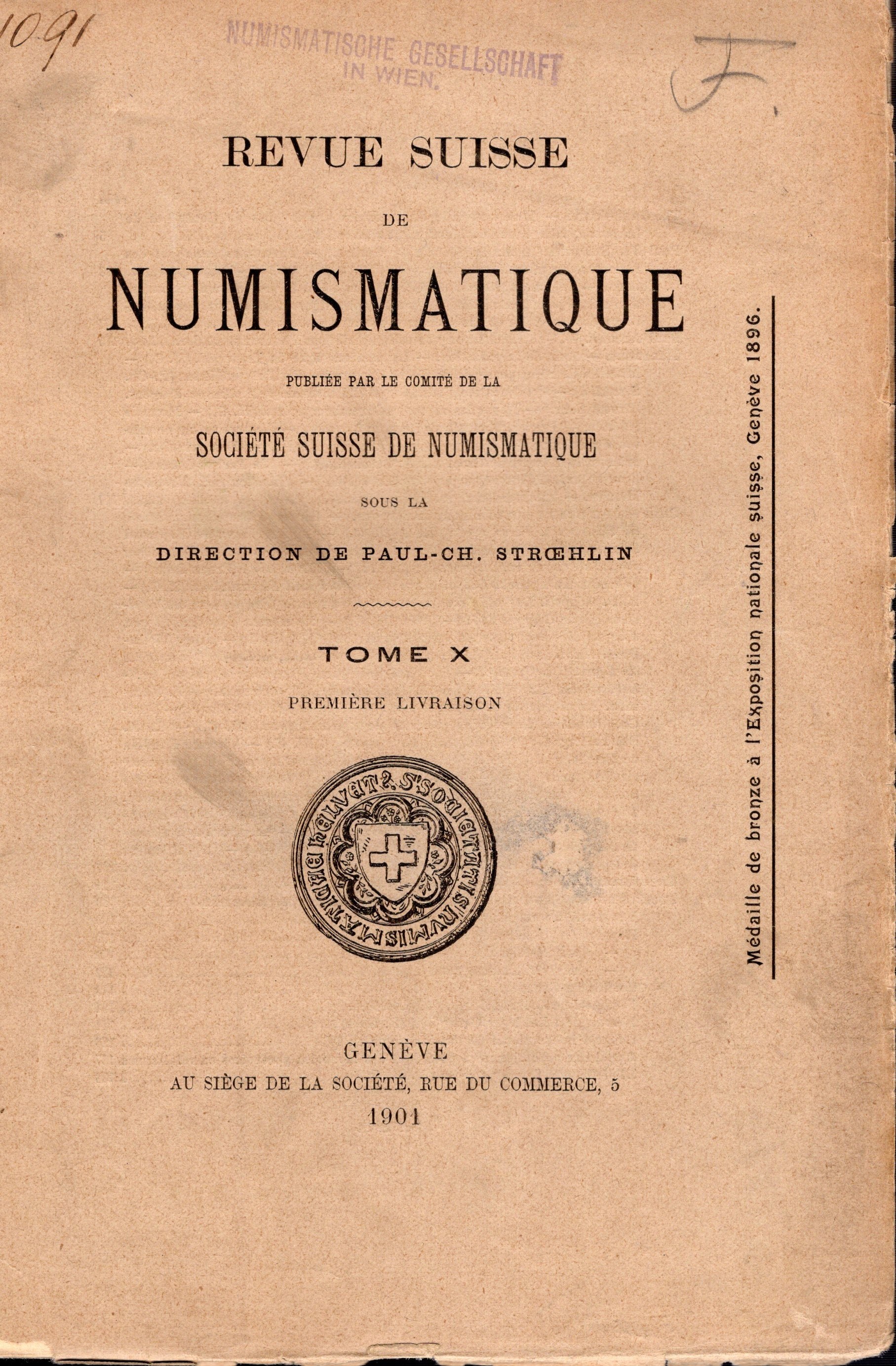 AA.VV. - Revue Suisse de Numismatique. Tome X. Geneve, 1901. pp 192, illustrazioni nel testo. brossura ed. sciupata,slegato ma in buono stato. Fasc. dedicato soprattutto alla monetazione svizzera + u