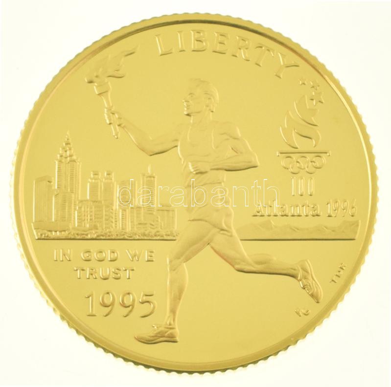 Amerikai Egyesült Államok 1995W 5$ Au "Atlantai Olimpia 1996 - Fáklyavivő" (8,35g/0.900) T:PP / USA 1995W 5 Dollars Au "Atlanta Olympics 1996 - Torch Runner" (8,35g/0.900) C:PP Krause KM#261