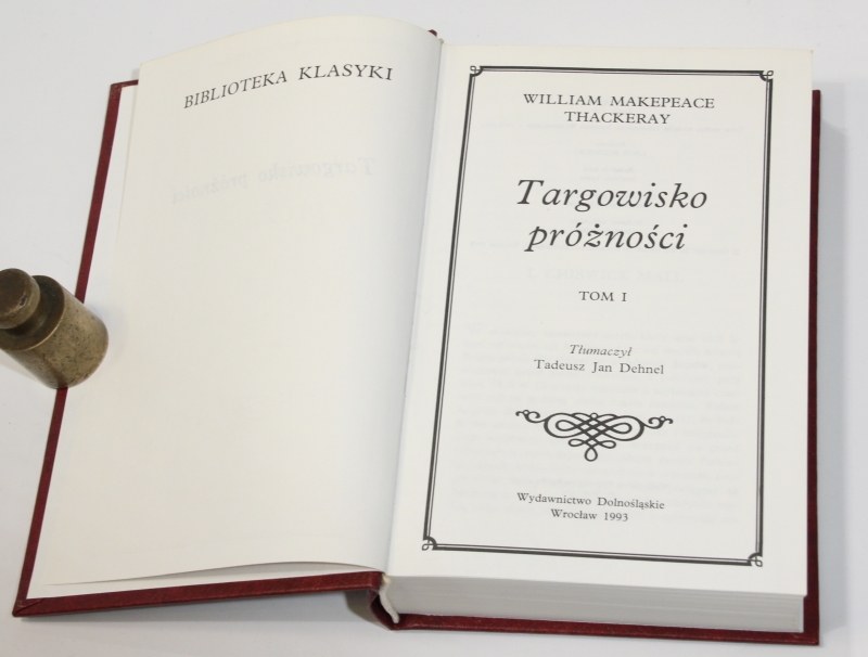 William Makepeace THACKERAY Targowisko próżności 1-2t. Wrocław 1993 Wydawnictwo Dolnośląskie Ser. wyd.: Biblioteka Klasyki 654; 664 s. o. oryginalne, ozdobne Górne obcięcia kart złocone s. bdb For. ca: 21×13 cm |