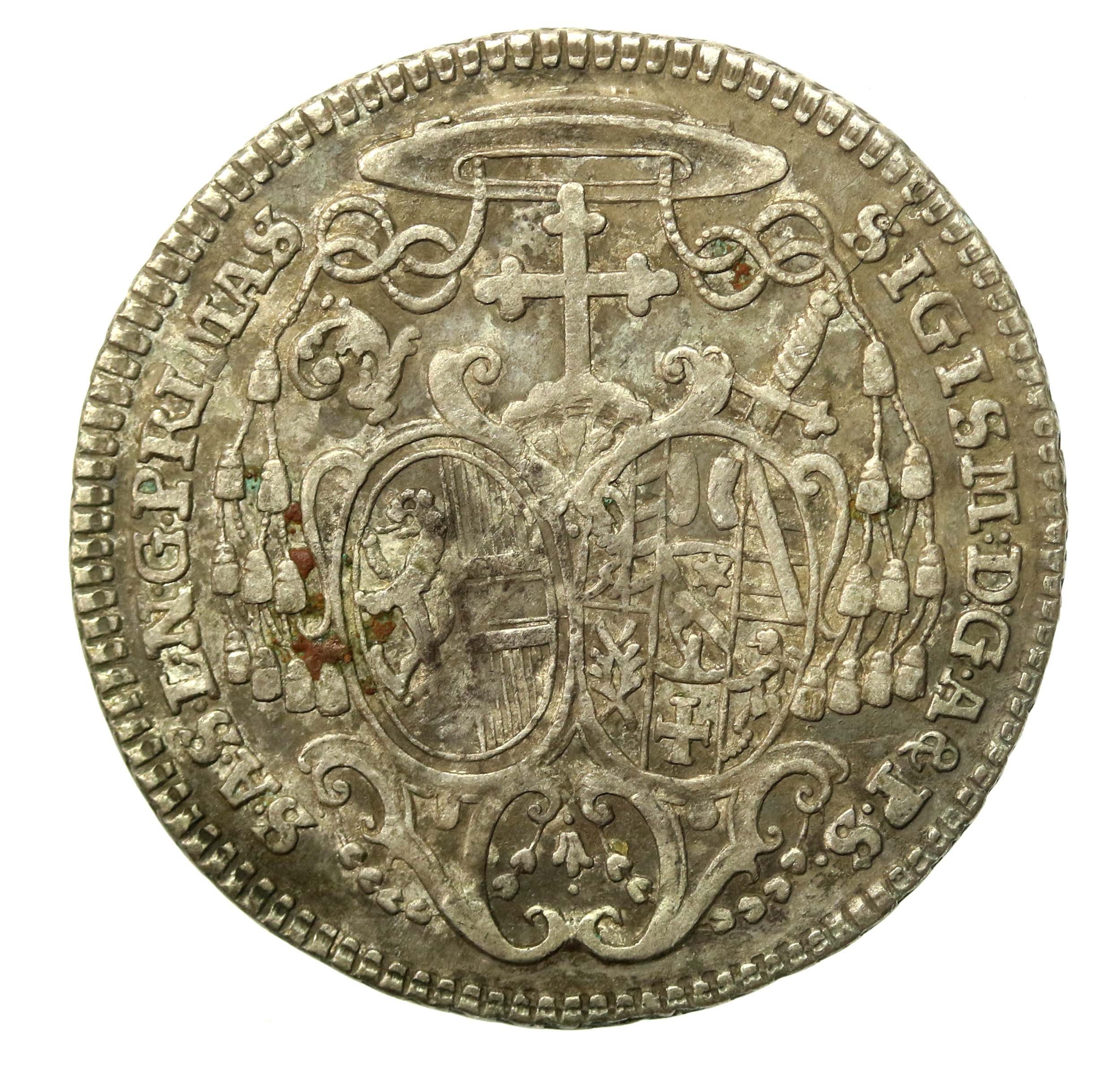 Austria, Arcybiskupstwo Salzburg, 10 krajcarów 1754, Salzburg. Stan zachowania 3+/2-. Dobrze zachowana moneta z patyną.