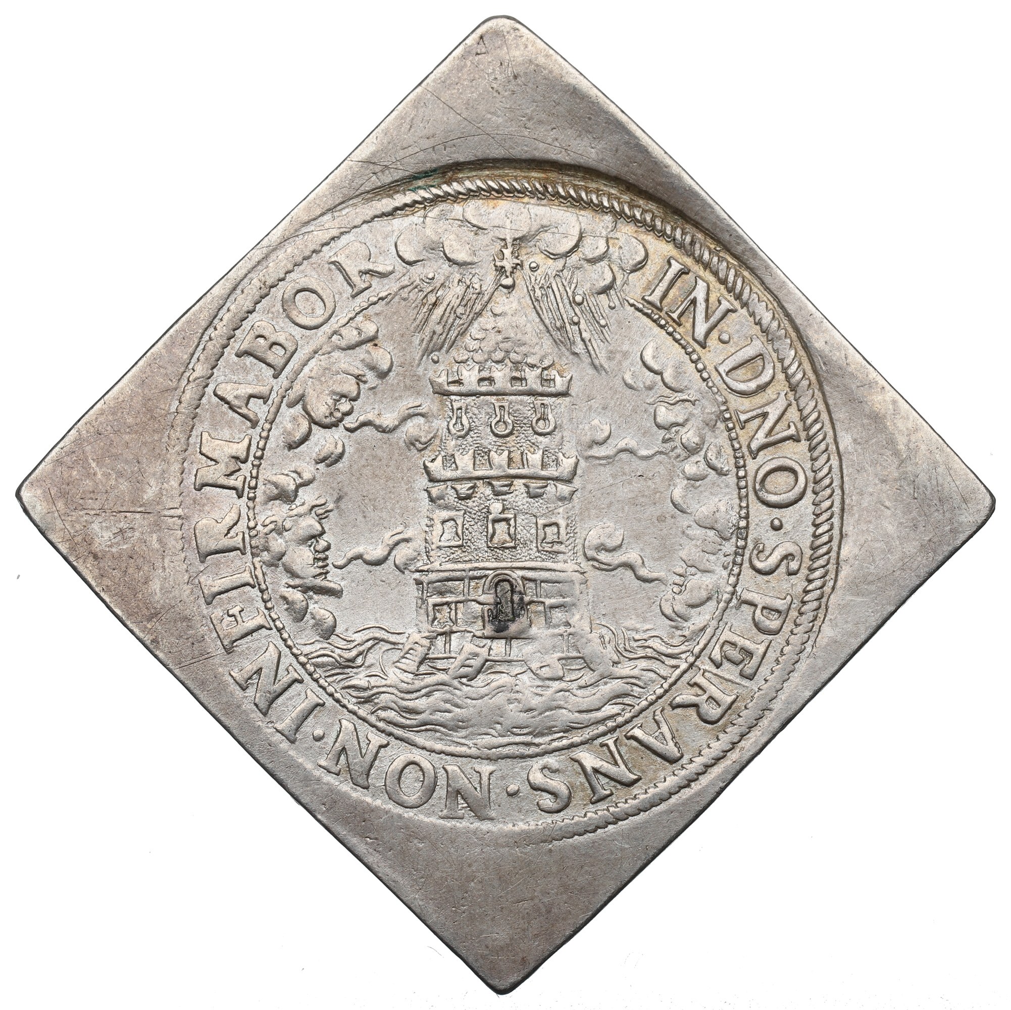 Rewers: czteropiętrowa wieża, w otoku legenda:
