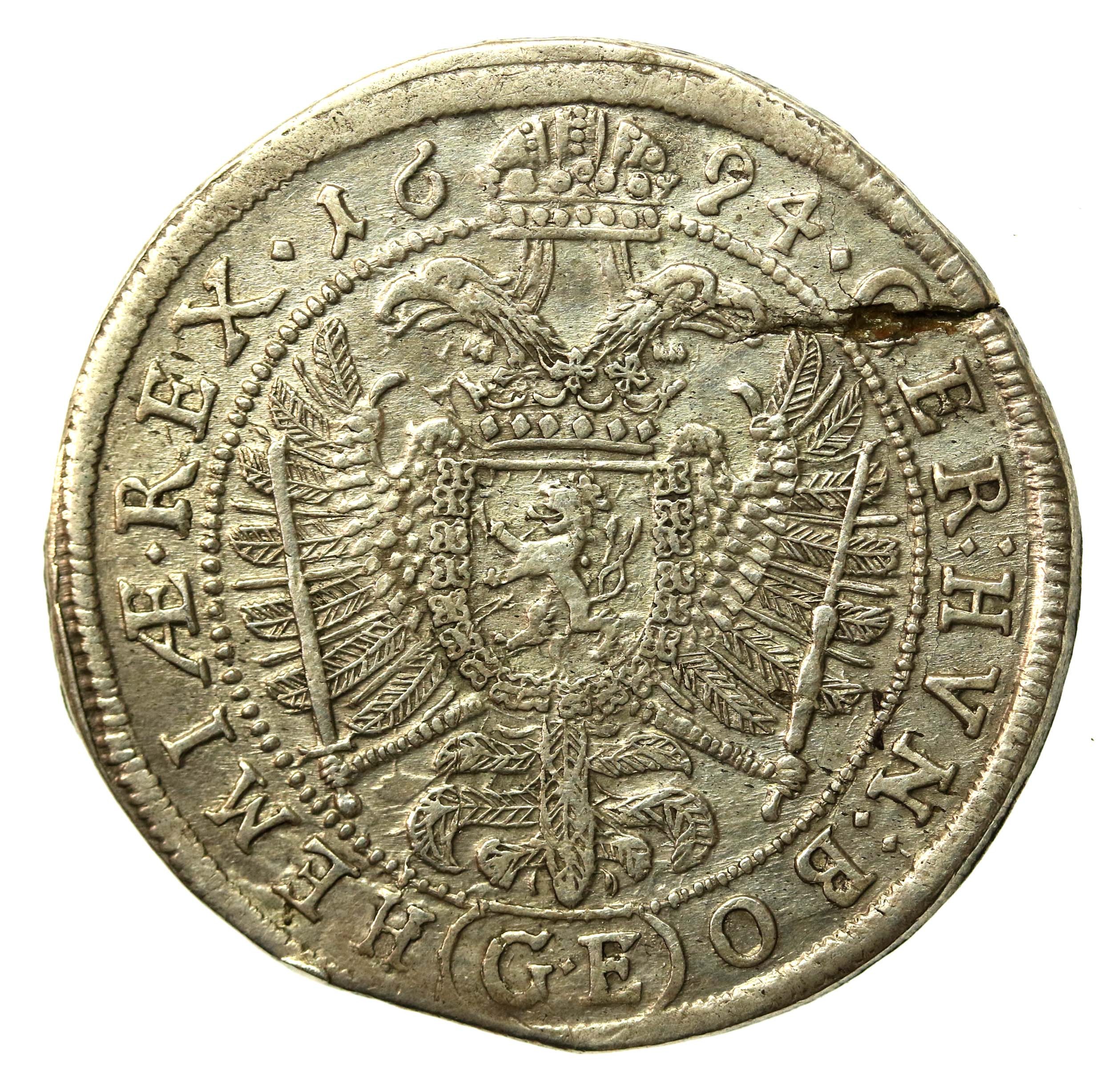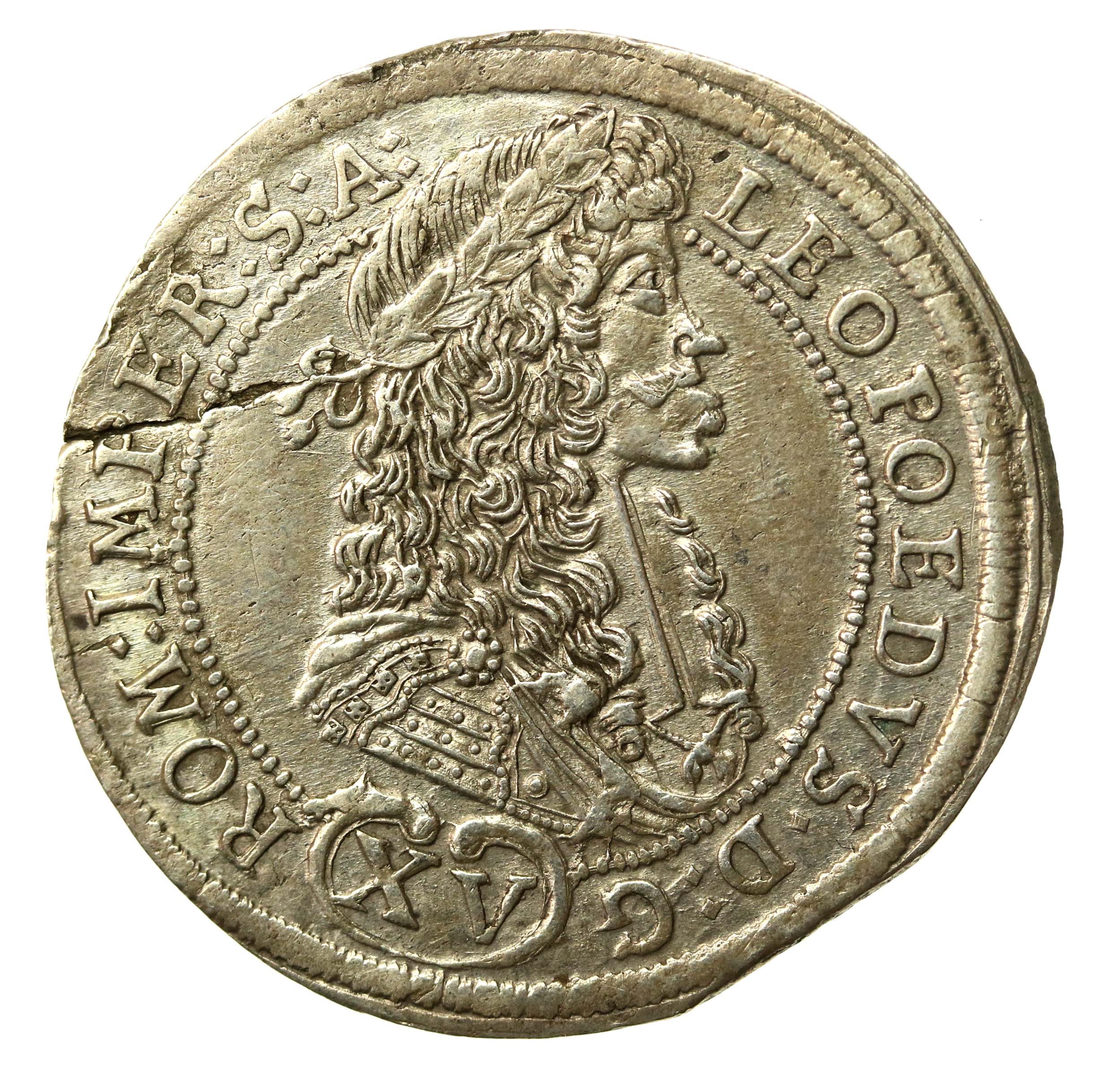Austria, Leopold I, 15 Krajcarów 1694 GE Praga, LEOPOEDUS. Duża rzadośc. Stan zachowania 2-. Literatura Hal.1410, Höll.94.3.1.