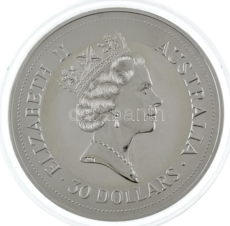 Ausztrália 1992. 30$ Ag "Kookaburra" kapszulában (1000g/0.999/101mm) T:UNC Australia 1992. 30 Dollars Ag "Kookaburra" in capsule (1000g/0.999/101mm) C:UNC Krause KM#181