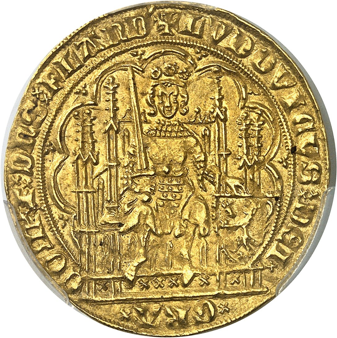 Flandres (comté de), Louis de Male (1346-1384). Écu d’or à la chaise et au lion ND (1346-1384), Gand ou Malines. PCGS MS64 (50940488).