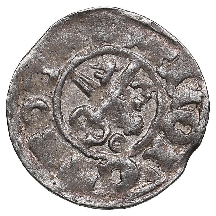Rev.: Coat of arms of the bishopric – crossed key and sword; family mark above, annulet below; “+MONЄTA○DARP”.