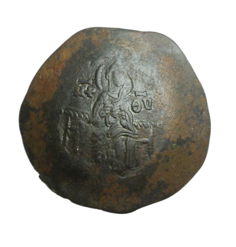 AE 30 aspron trachy I Comnenus (1081-1118 ne)-; postać cesarza z labarum na wprost / postać Chrystusa na tronie na wprost; stan II, ciemna patyna, wyjątkowa czytelność detali; SOMMER 61.9, SEAR 1964;
