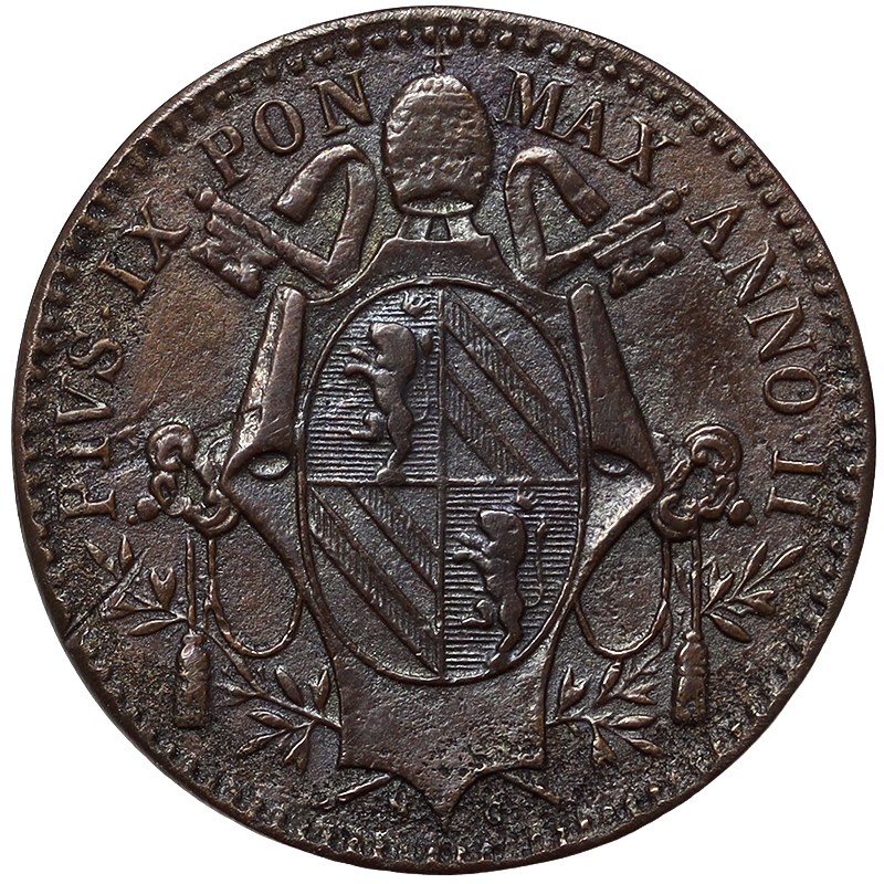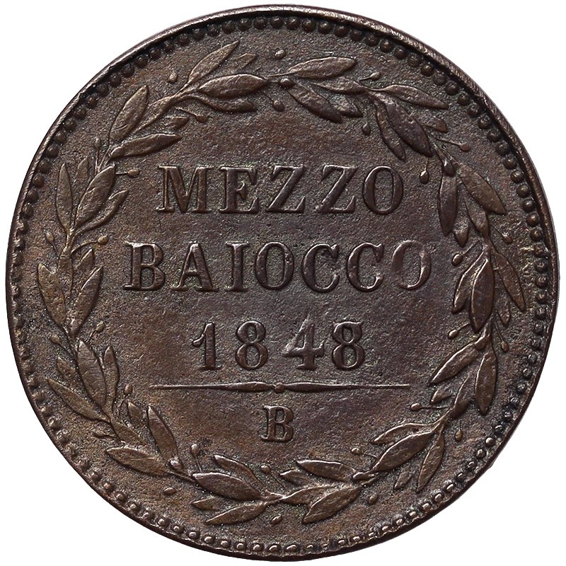 Bologna, Pio IX (1846-1878), 1/2 Baiocco 1848, Rare