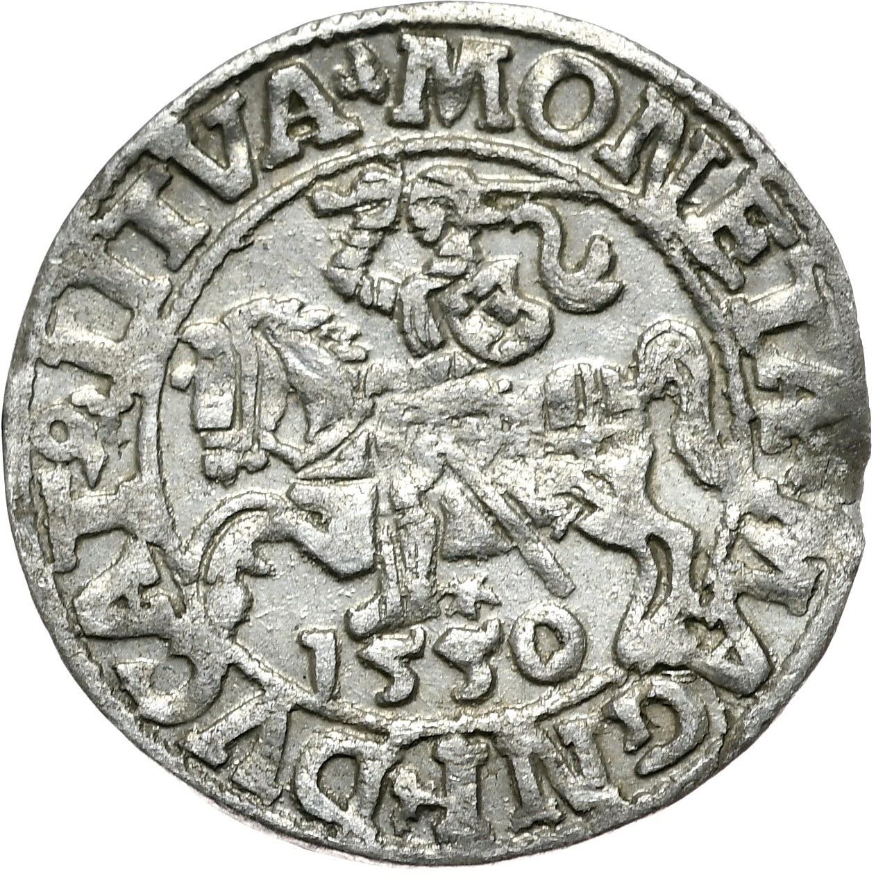 Końcówki napisów LITVA/LI. Arabska cyfra "1" w dacie. Ładny detal, lekko podgięty przy rancie.