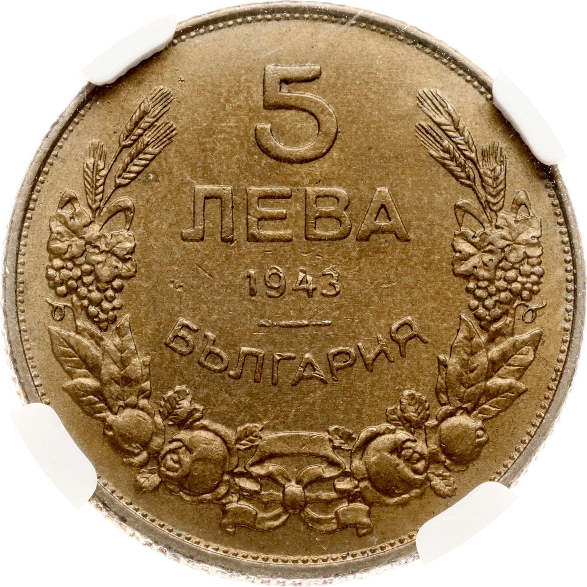 Bulgaria. Boris III (1918-1943). 5 Leva 1943. Nickel clad steel. KM  39b. NGC MS 62.
