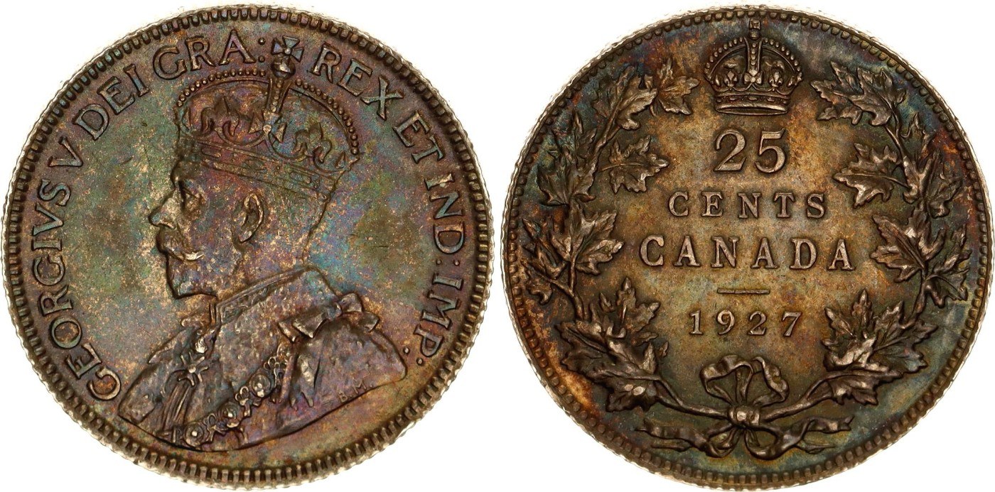 KM# 24a; Silver; George V; UNC with Amzaing Multicolor Patina!