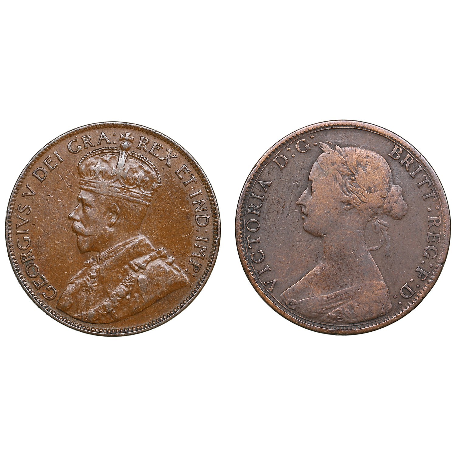 Various condition. Nova Scotia 1 Cent 1864 - Victoria (1842-1901). KM 8. Newfoundland 1 Cent 1929 - George V (1910-1936). KM 16.