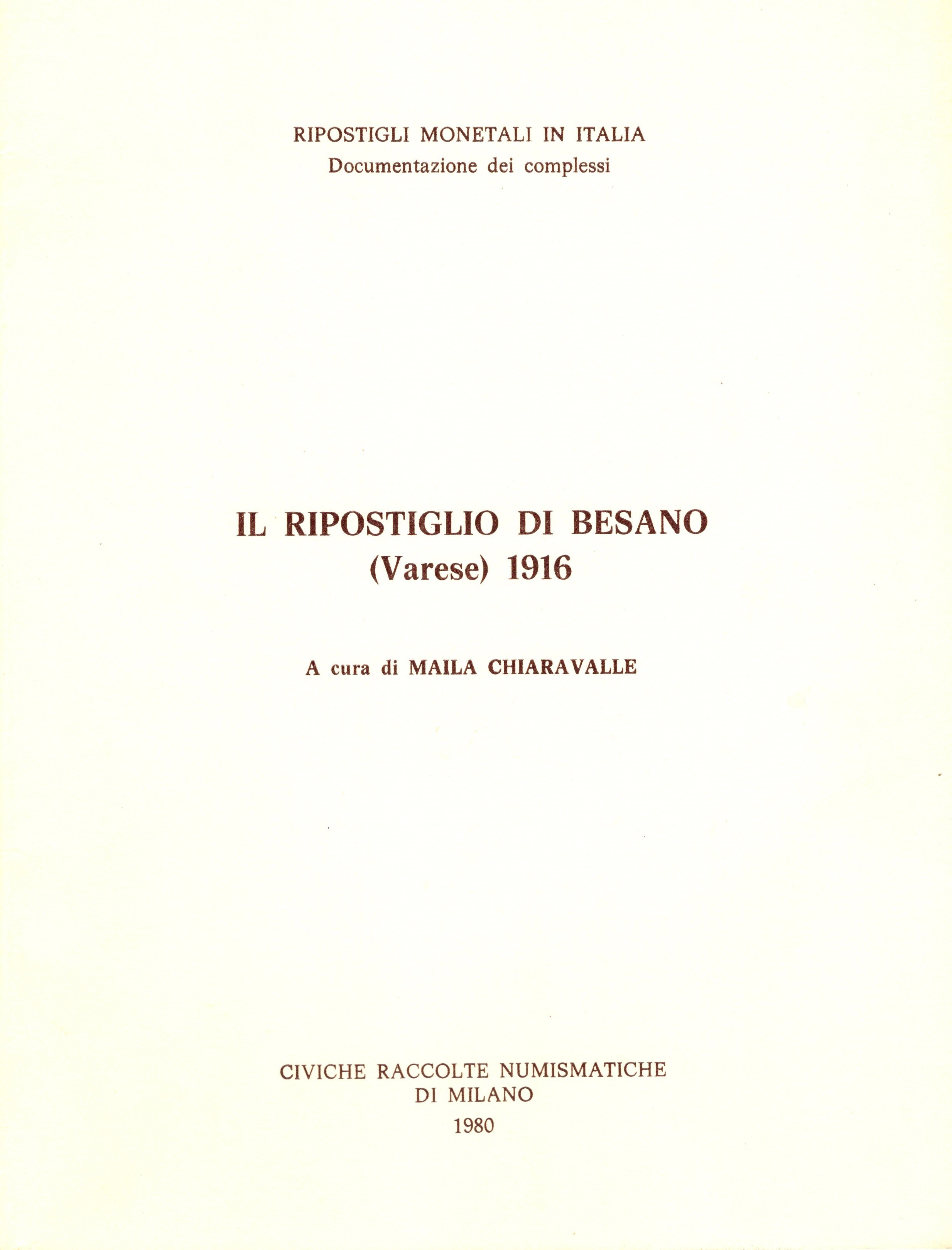 CHIARAVALLE M. - Il ripostiglio di Besano ( Varese) 1916. Milano, 1980. Pp. 17, tavv. 2. Monete romane imperiali. Rilegatura editoriale buono stato.