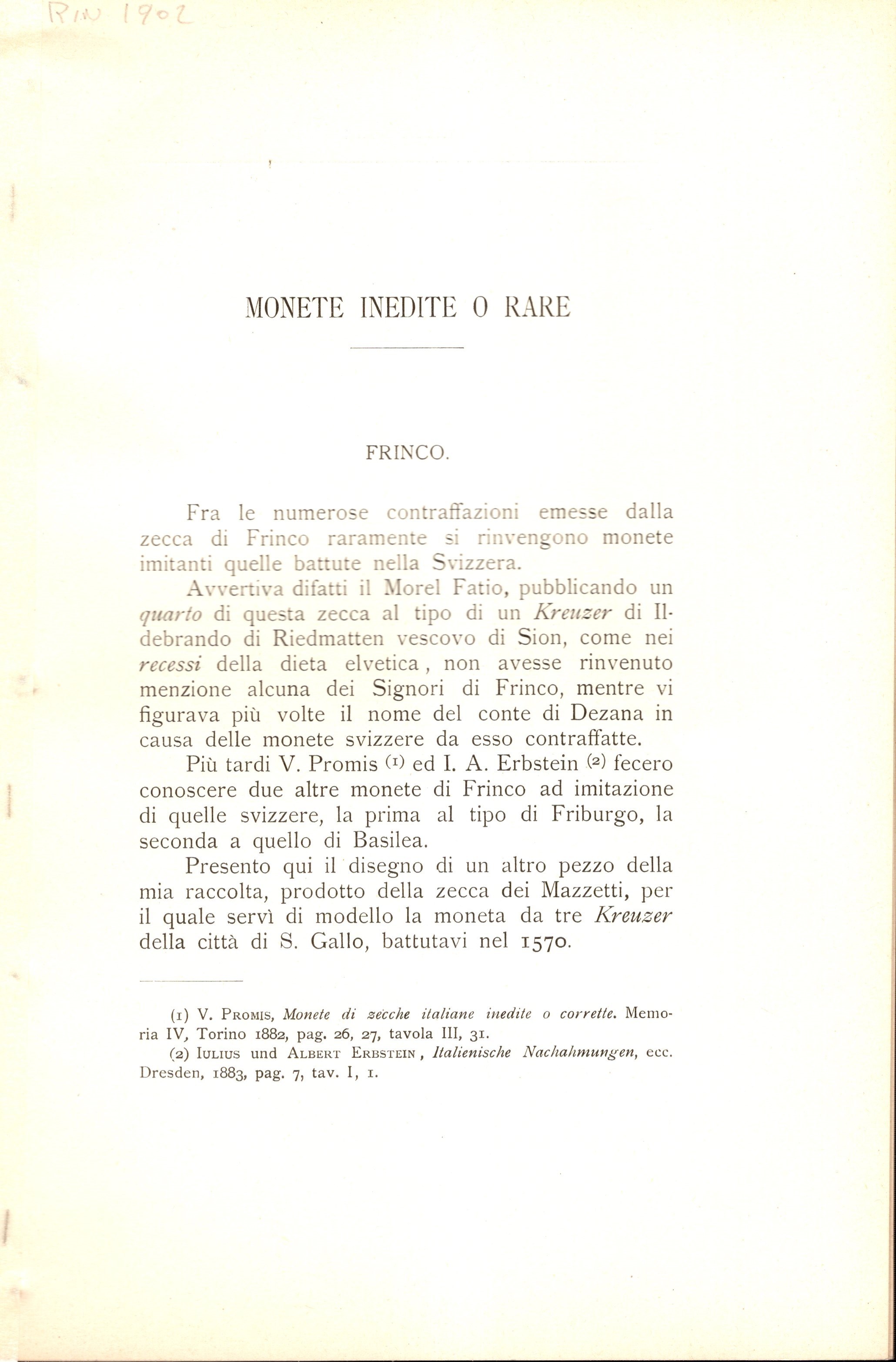 CIANI Giorgio - Monete inedite o rare. Frinco, Cisterna,Tresana, Urbino. Brossura ed. buono stato, raro.