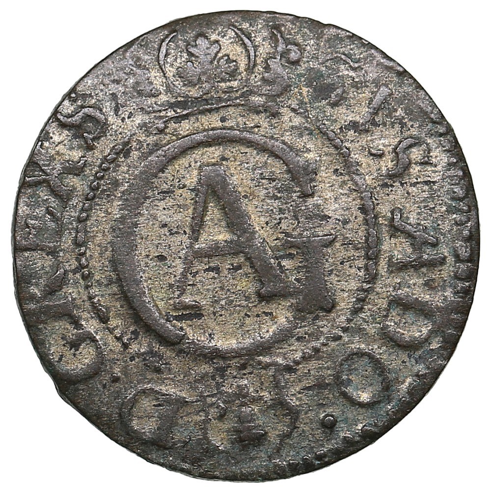 Obv.: Crowned monogram GA, Vasa arms below; “GVS·ADO· - D:G·REX S”.