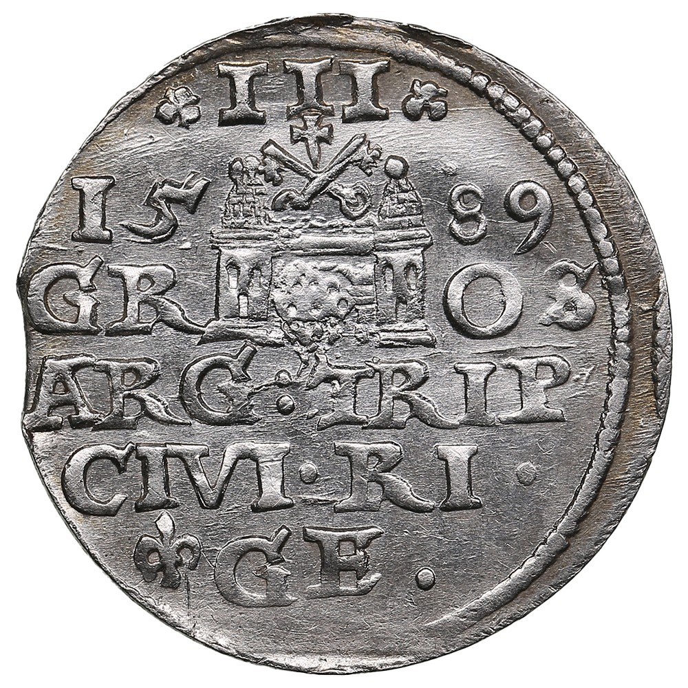 City of Riga under Polish rule, AR 3 Groszy / Trojak 1589 - Sigismund III Vasa (1587-1632)