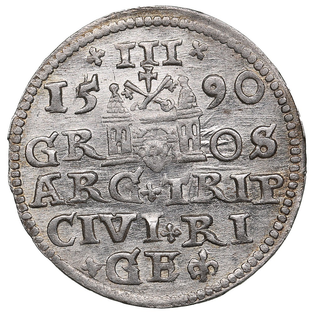 City of Riga under Polish rule, AR 3 Groszy / Trojak 1590 - Sigismund III Vasa (1587-1632)
