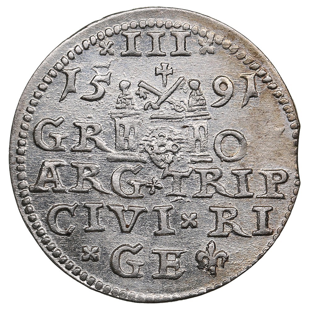 City of Riga under Polish rule, AR 3 Groszy / Trojak 1591 - Sigismund III Vasa (1587-1632)