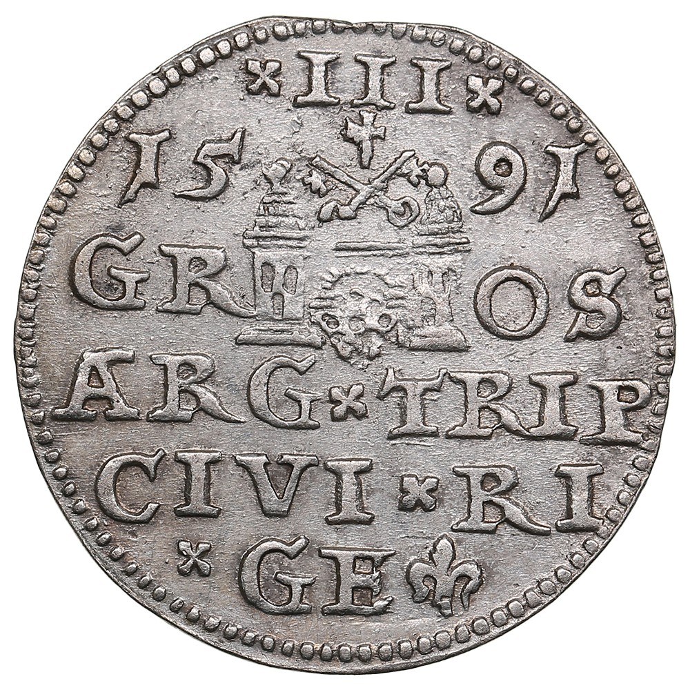 City of Riga under Polish rule, AR 3 Groszy / Trojak 1591 - Sigismund III Vasa (1587-1632)
