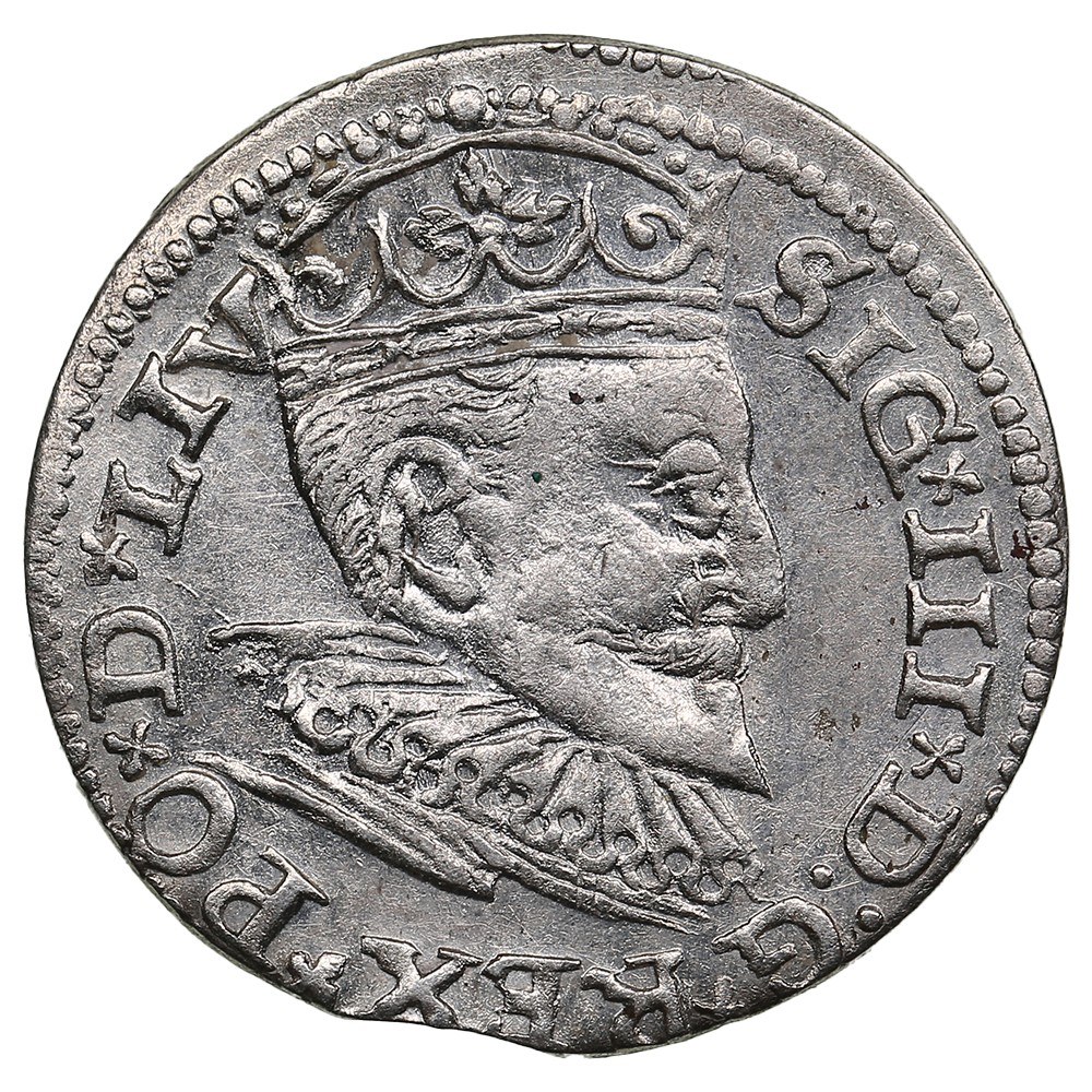 Obv.: Crowned bust of Sigismund III right, wearing ruffled collar; “SIG×III×D:G×REX×PO×D×LIV”.