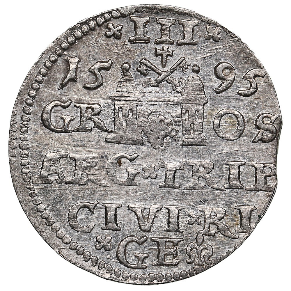 City of Riga under Polish rule, AR 3 Groszy / Trojak 1595 - Sigismund III Vasa (1587-1632)