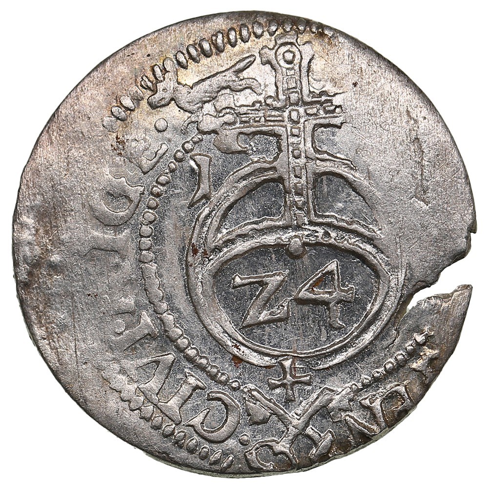 Rev.: Orb, with Z4 (1/24 Thaler), date (16)1 - 6 across field; Riga arms below; “(GROS·AR)GEN – CIVI·RIGE· (mintmaster’s mark – wolf)”.
