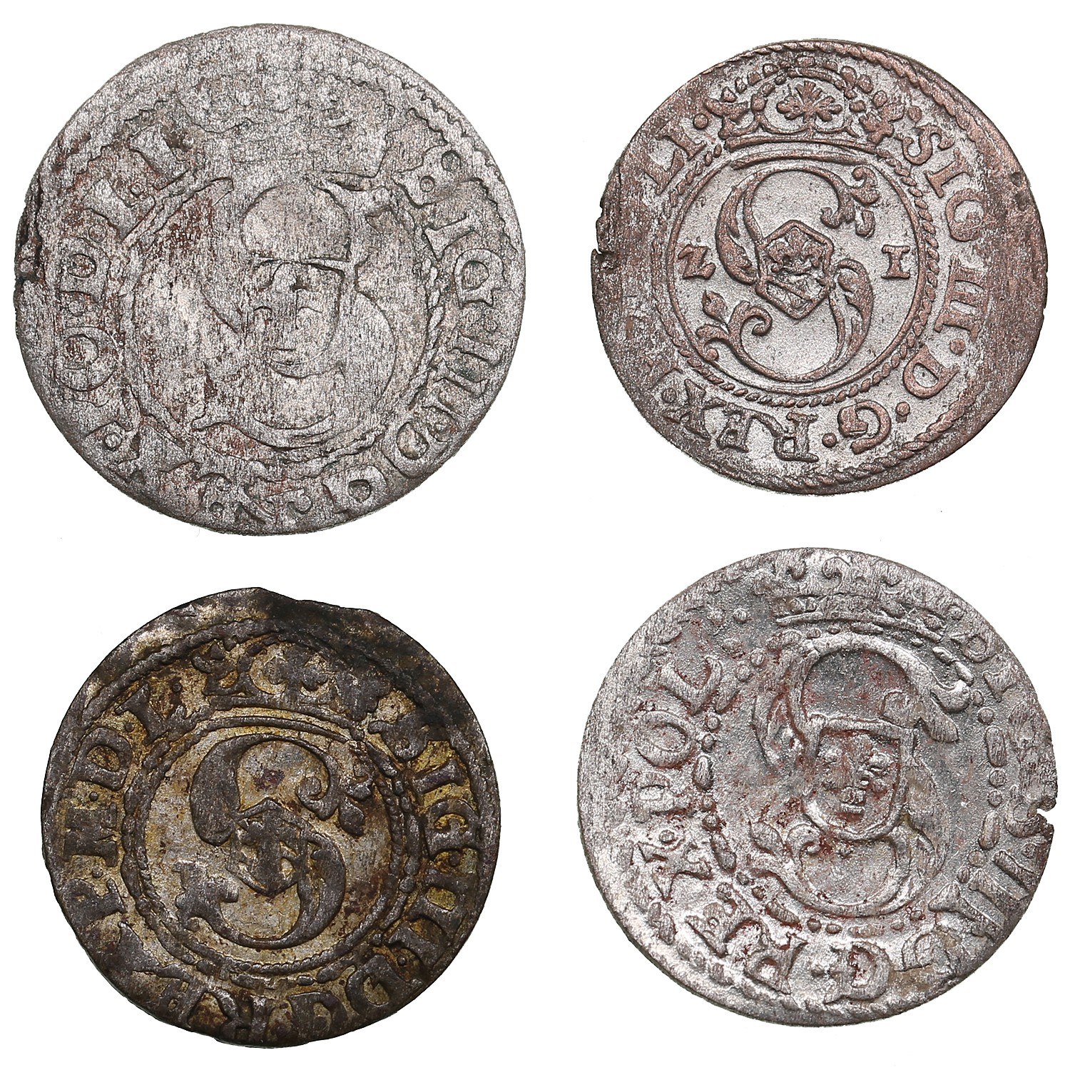 Various condition. Dated (1)609; 1616; (16)Z0; (16)Z1. Haljak 1080; 1109; 1123; 1125b. Issue historically associated with present-day Latvia and Sweden.