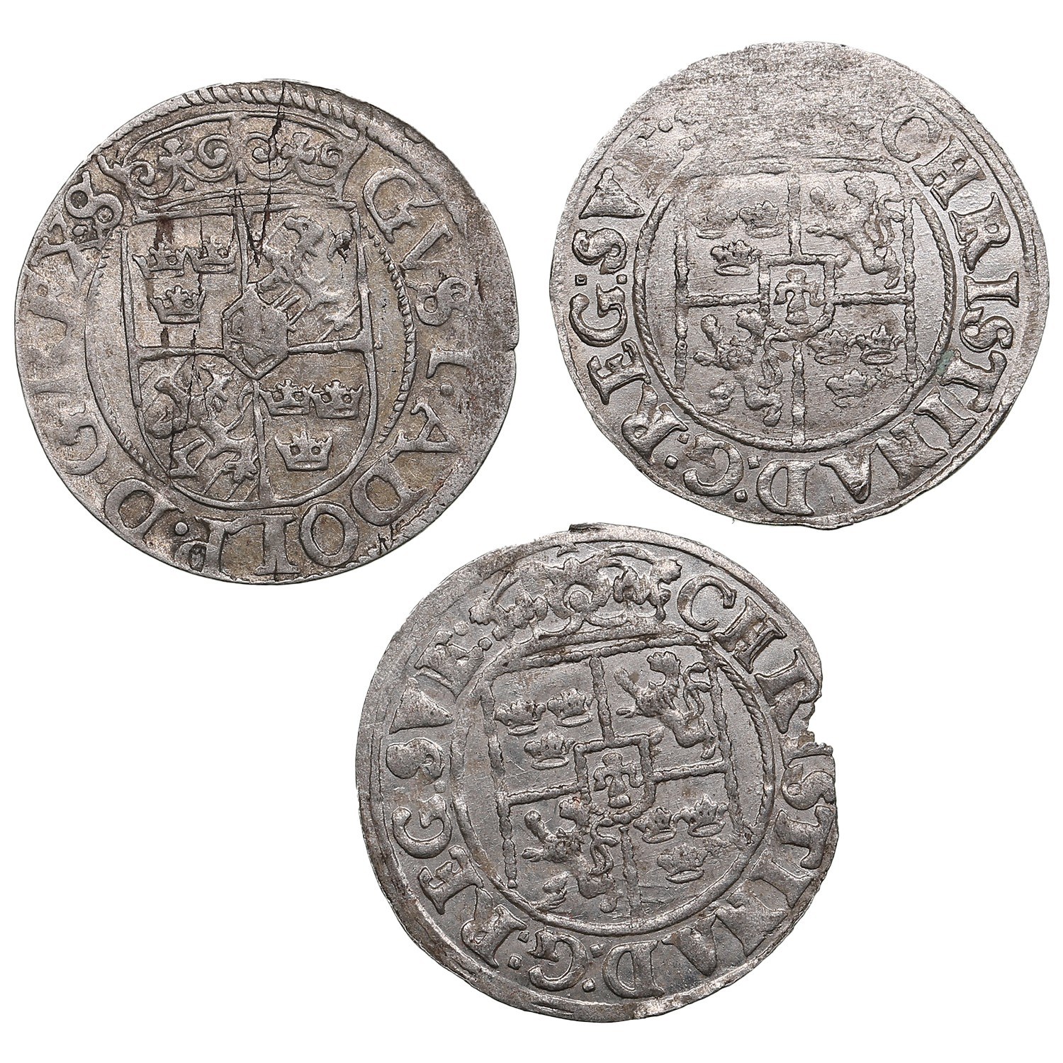XF-UNC. Gustav II Adolf (1611-1632): 1623. Haljak 1461. Christina (1632-1654): 1644 (2). Haljak 1507. Issue historically associated with present-day Latvia and Sweden.