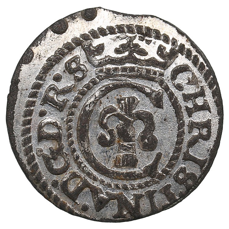 Obv.: Wasa arms inside crowned C; “CHRISTINA·D·G·D·R·S”.