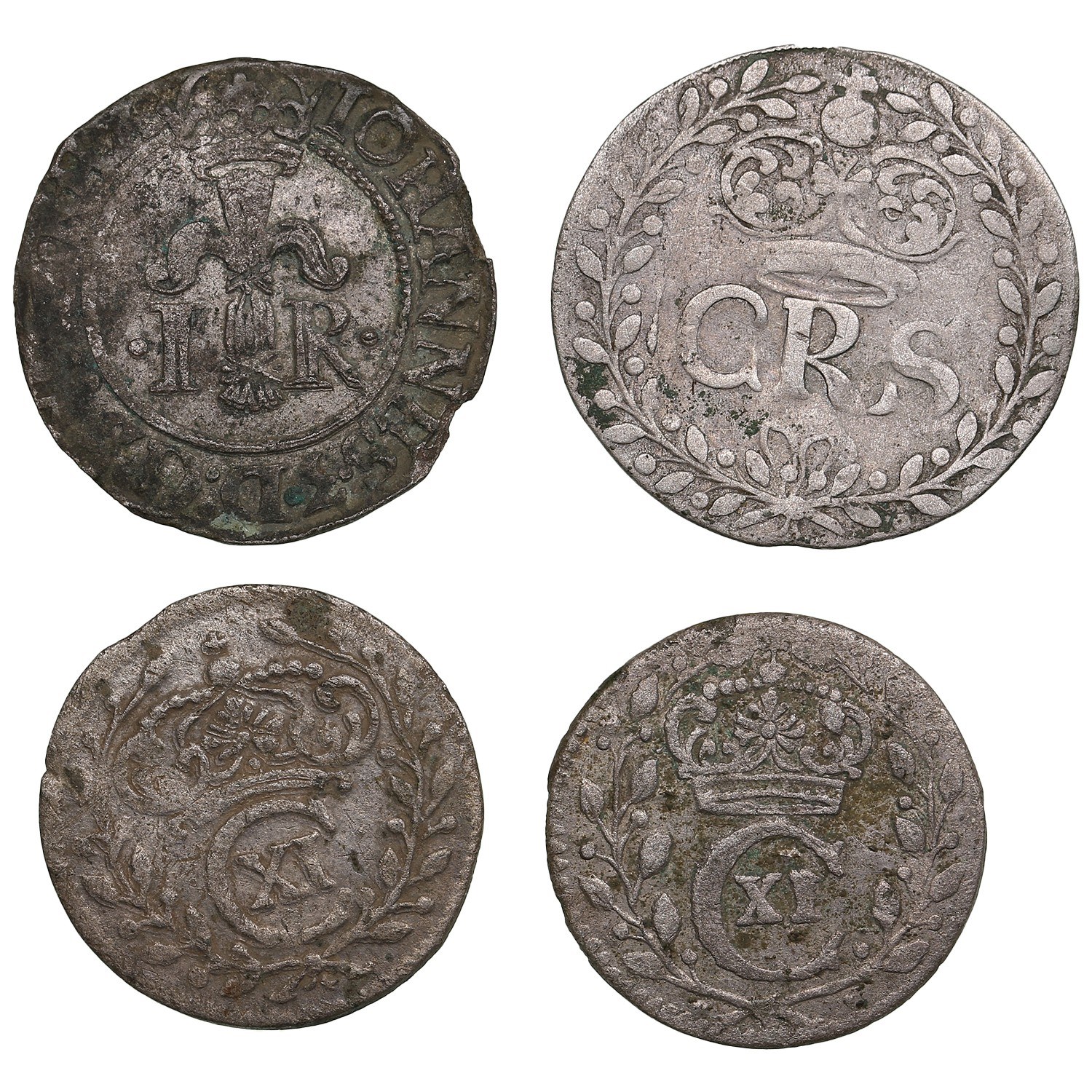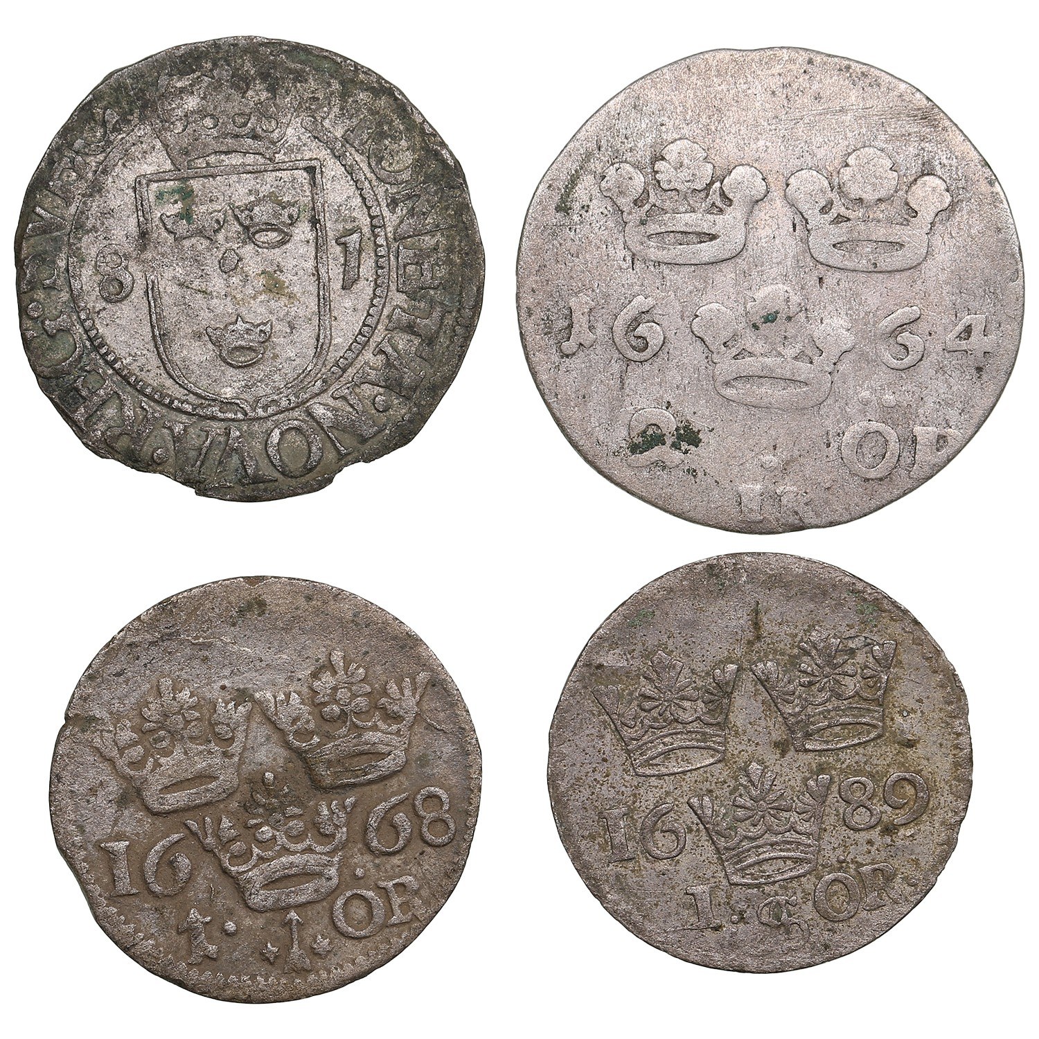 Various condition. ½ Öre 1581 - Johan III (1568-1592). SM 104a. 1 Öre 1668; 1689 - Karl XI (1660-1697). SM 228a; 245. 2 Öre 1664 - Karl XI (1660-1697). SM 214.