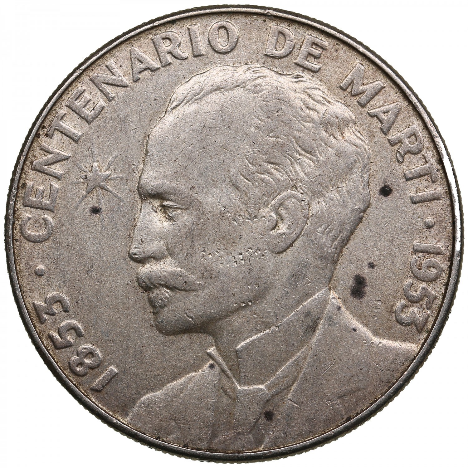26.76g. VF+/VF+. Circulating commemorative coin: 100th anniversary of the birth of José Martí, Cuban national hero. KM 29.