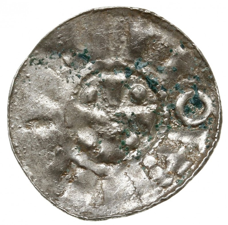 denar ok. 1015-1020; Aw: Krzyż utworzony z kółek i bele...