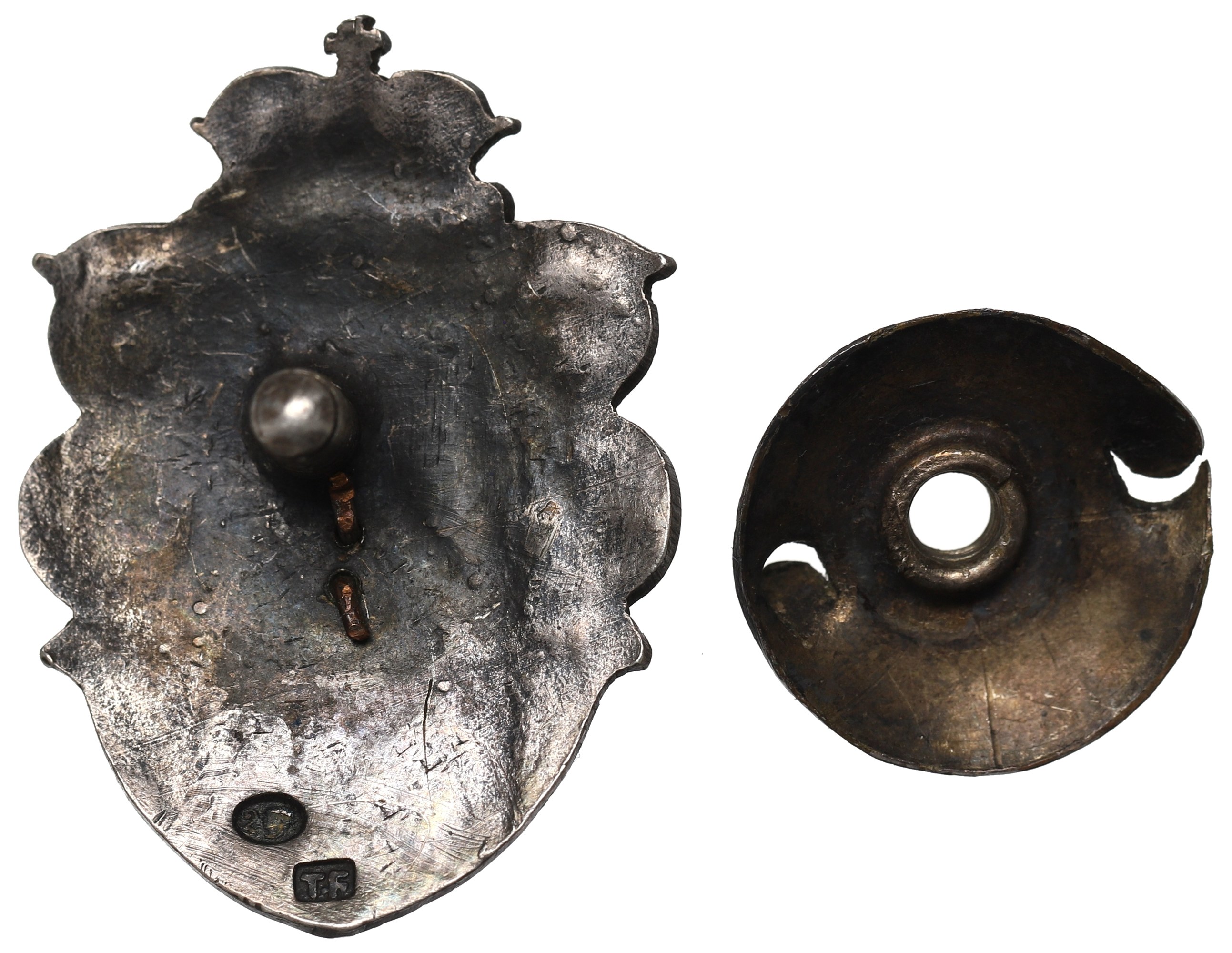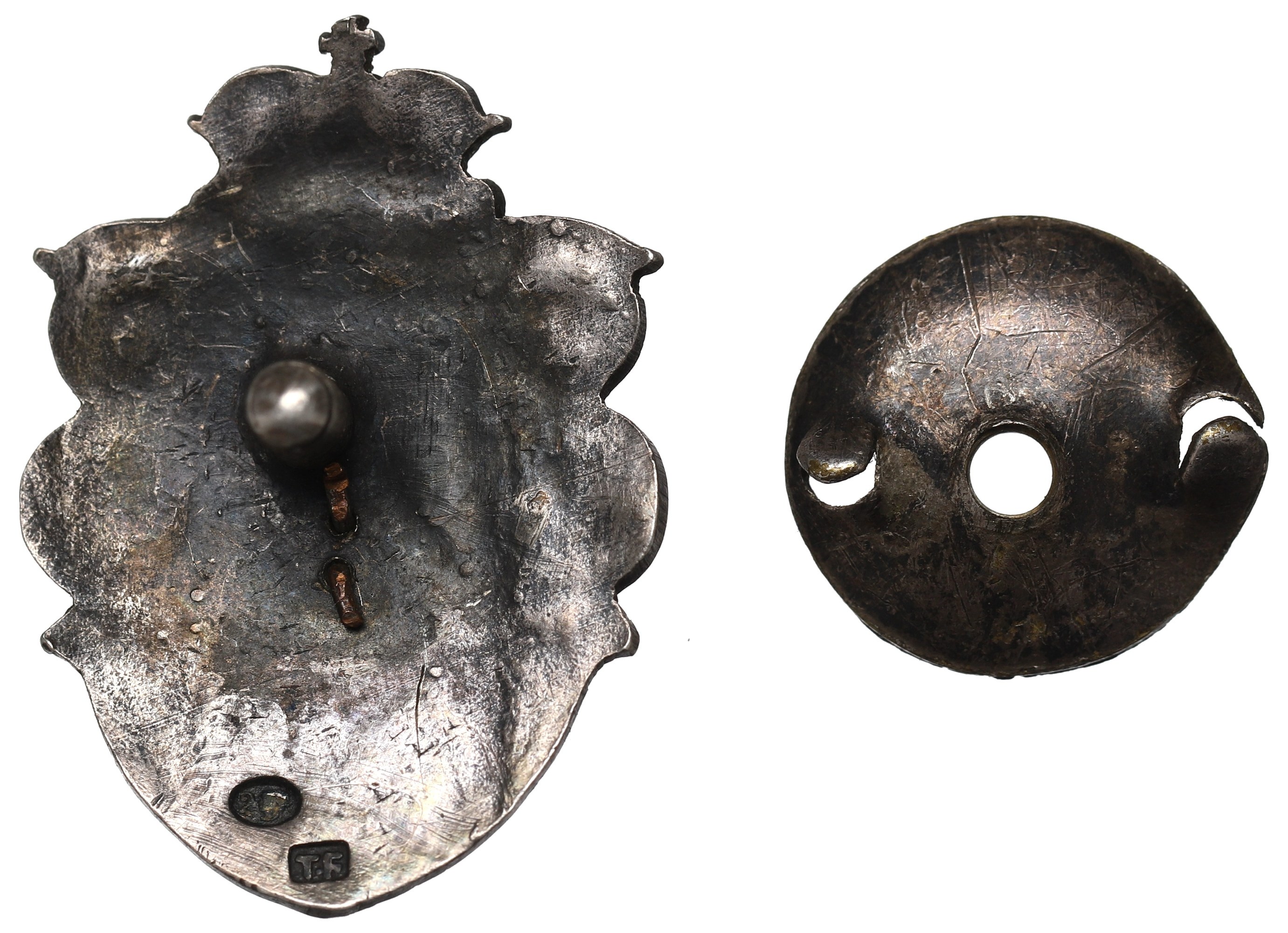 Srebro, emalia, wymiary 20 x 28 mm, waga 5,82 g.