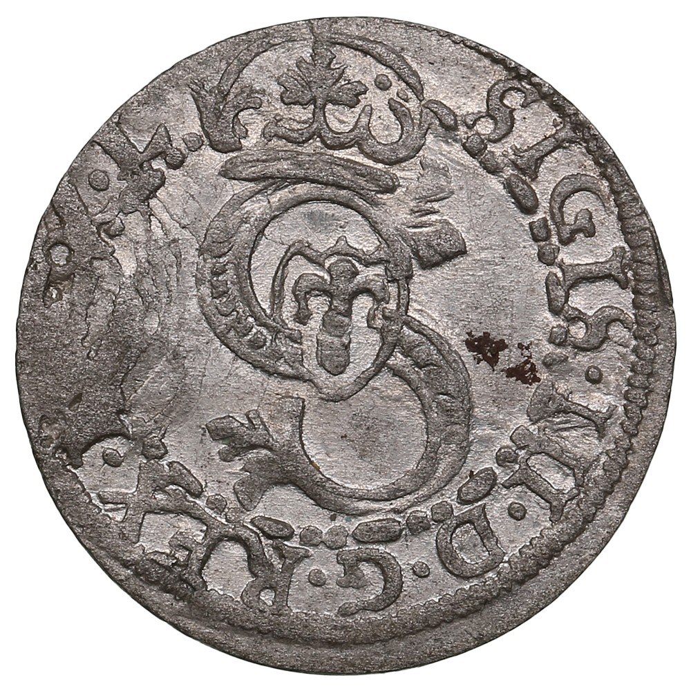 Obv.: Royal monogram of Sigismund III: crowned S with Vasa arms; “SIGIS·III·D·G·REX·POL·&·L”.