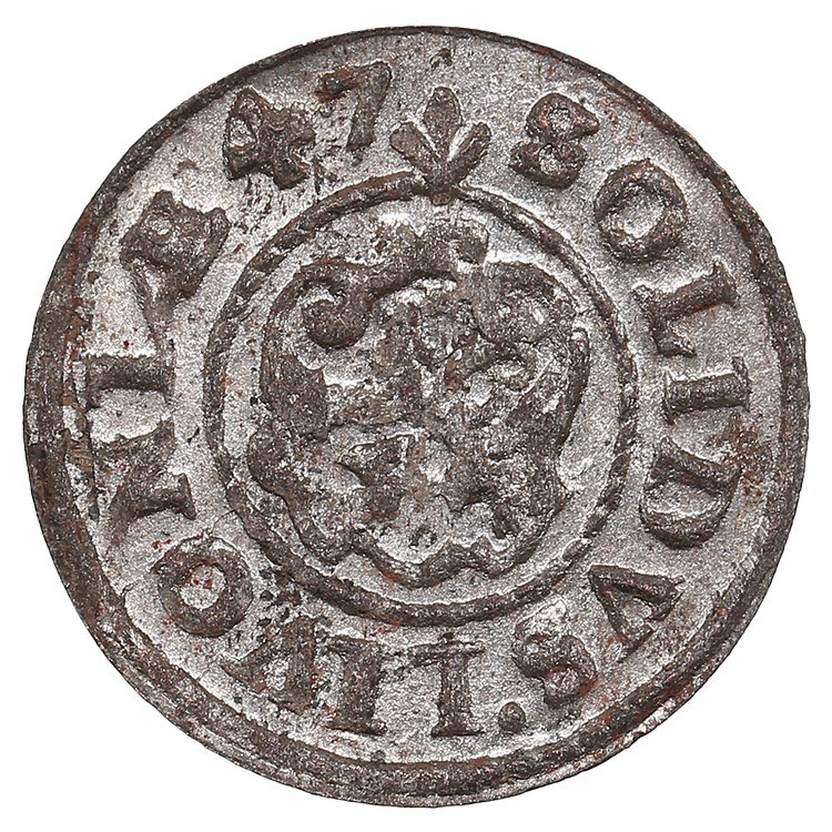 Rev.: Livonian griffin to left, in ornamented shield; “SOLIDVS·LIVONIÆ 47”.