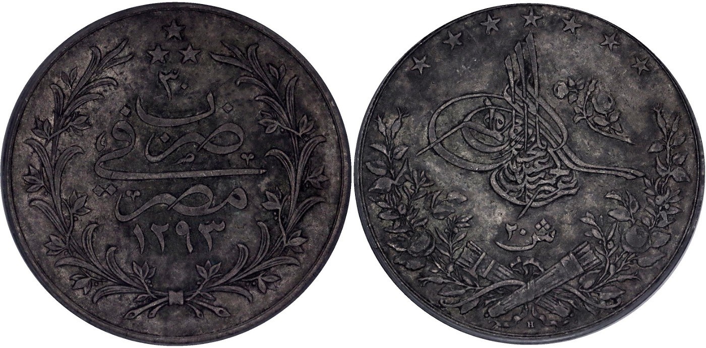 Egypt 20 Qirsh 1923 H AH 1293 // 30 PCGS XF 45